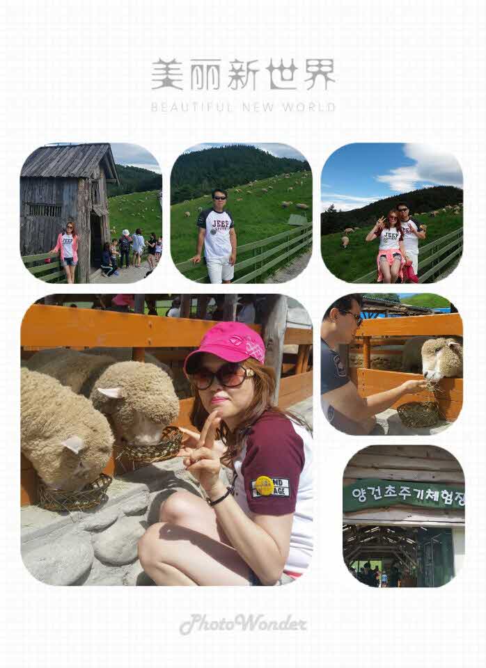 설레이는 마음으로 여행길에 올랐다.~ 대관령 양떼목장 산책로를 걸어며 신랑이랑 사진도 찍고 이지훈가이드께서 예쁘게 사진도 잘 찍어주셔서 넘 고마웠어요~^^ 바람이 시원하게 불어서 덥지도 않았다. 양들이 건초를 흡입하듯이 너무 잘 먹어서 놀랬다.^0^