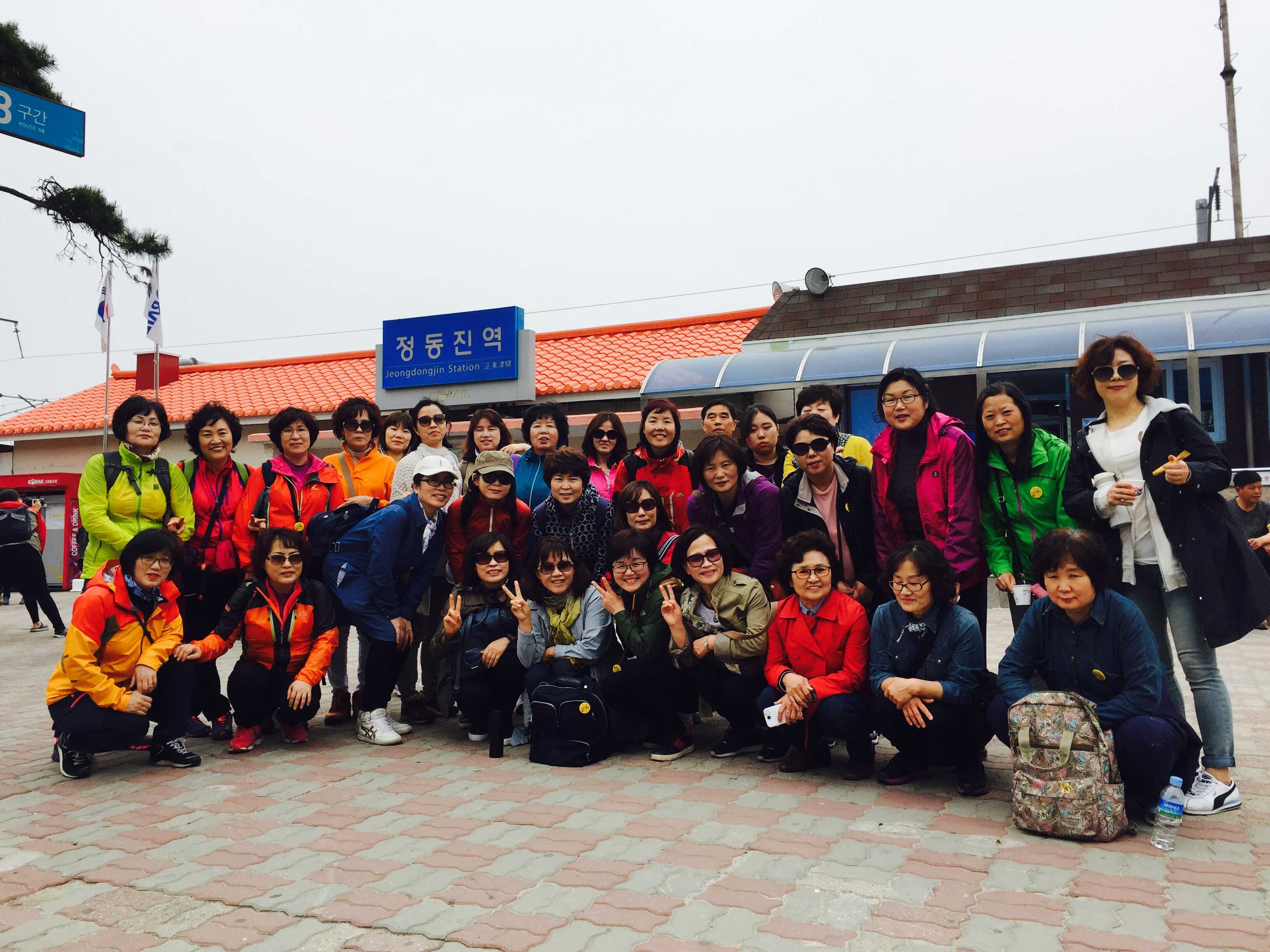 정동진 역 앞에서 단체사진^_^ 10명팀이 몇분 안보이네요ㅠㅠ