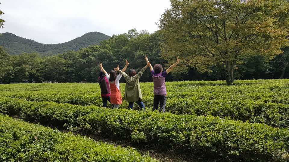 올라가는 길이 여러갈래가 있는데 가운데 길로 가면 녹차밭을 볼수 있어요