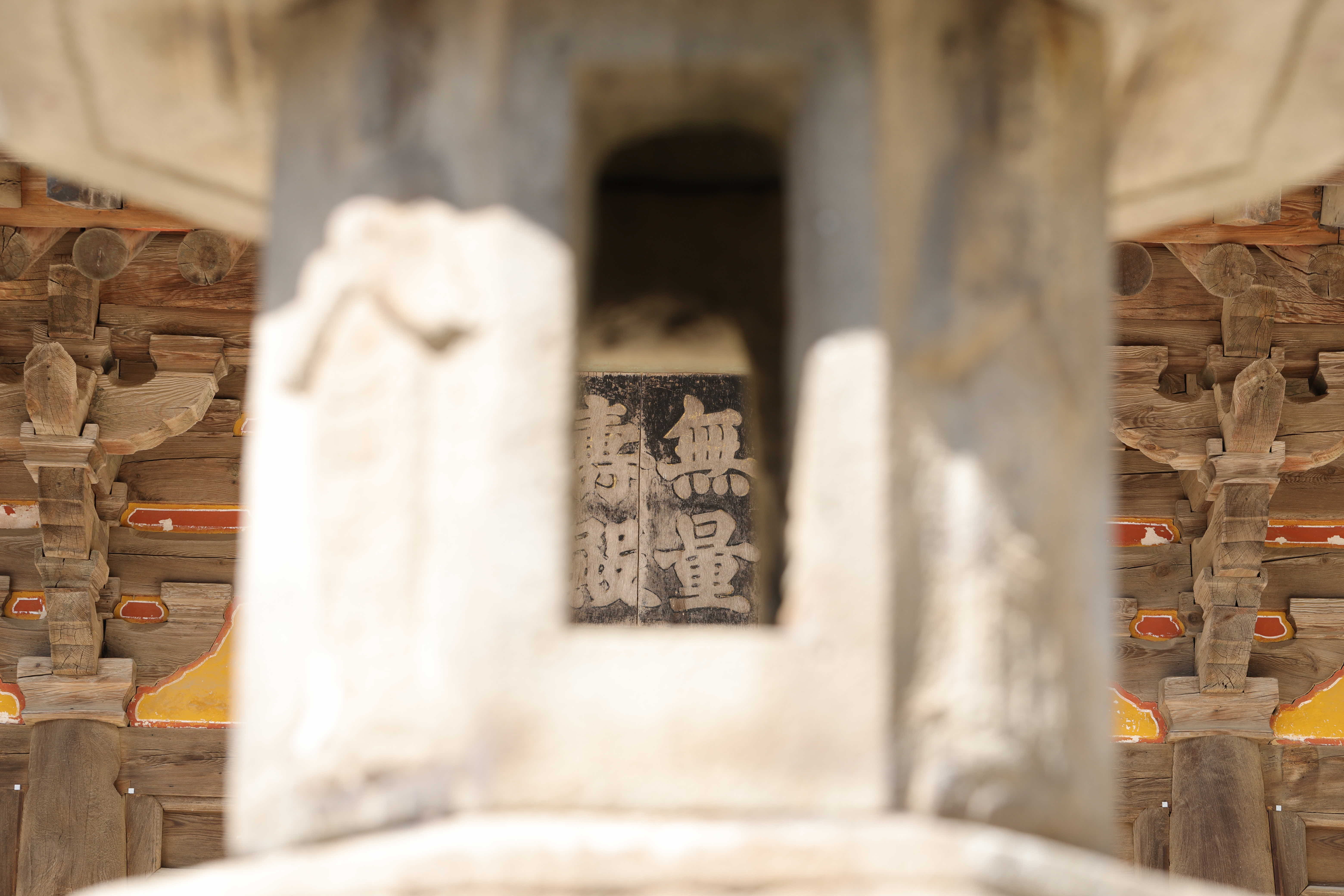 무량수전앞 석등의 빈공간으로 무량수전현판 글씨보기.