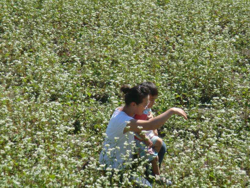 메밀꽃 속의 언니와 둘째 조카에요. 메밀꽃이 키만큼 자라주었음 좋겠어요, 실상은 무릎팍까지지만 그래도 잔뜩 핀 메밀꽃이 한데 어우러진 모습 참말 예뻐요^_^ |