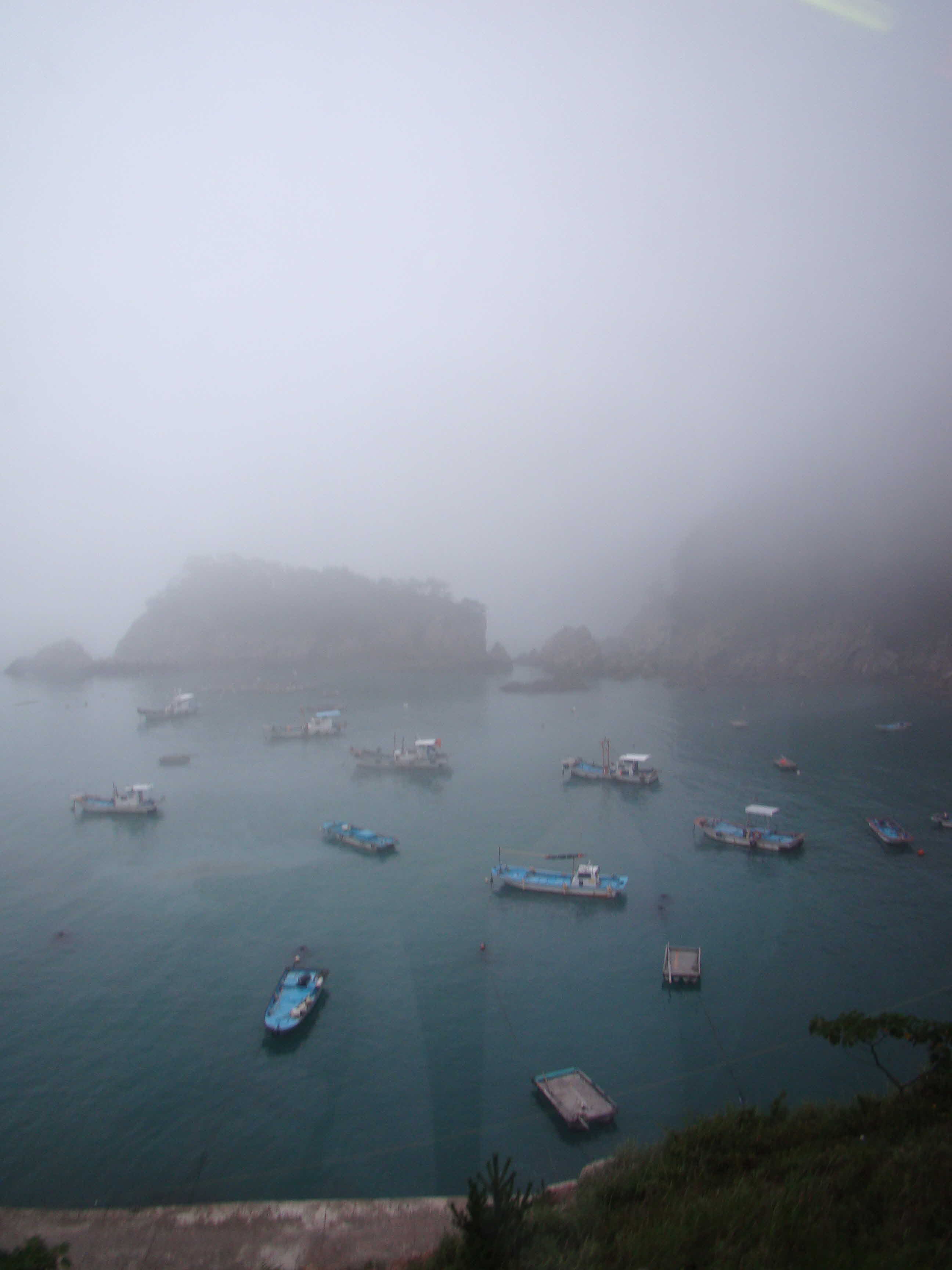 안개가 자욱한 한낮의 흑산도 앞바다..
