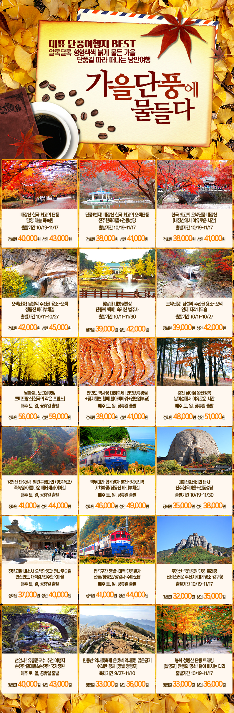 제목 대한민국 가을단풍에 물들다!! 2019 단풍여행지 BEST 등록일 19.09.21 조회 1,447