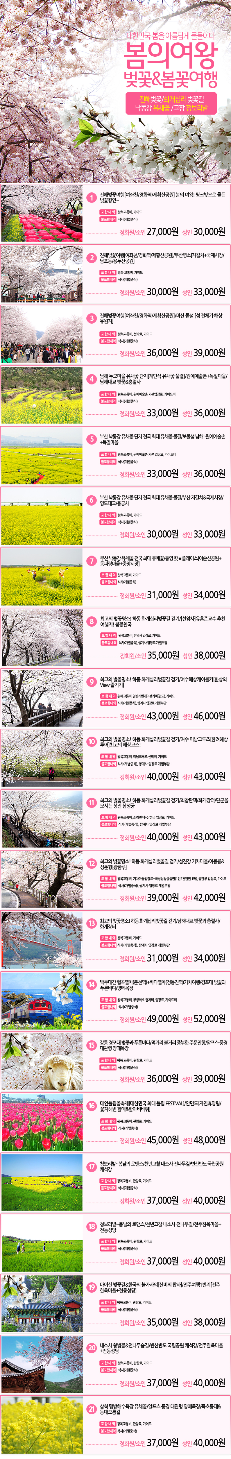 제목 2020 봄의여왕 벚꽃&봄꽃여행 ♥ 진해벚꽃/화개십리벚꽃길/낙동강유채꽃축제/고창 청보리밭 등록일 20.02.29 조회 1,342