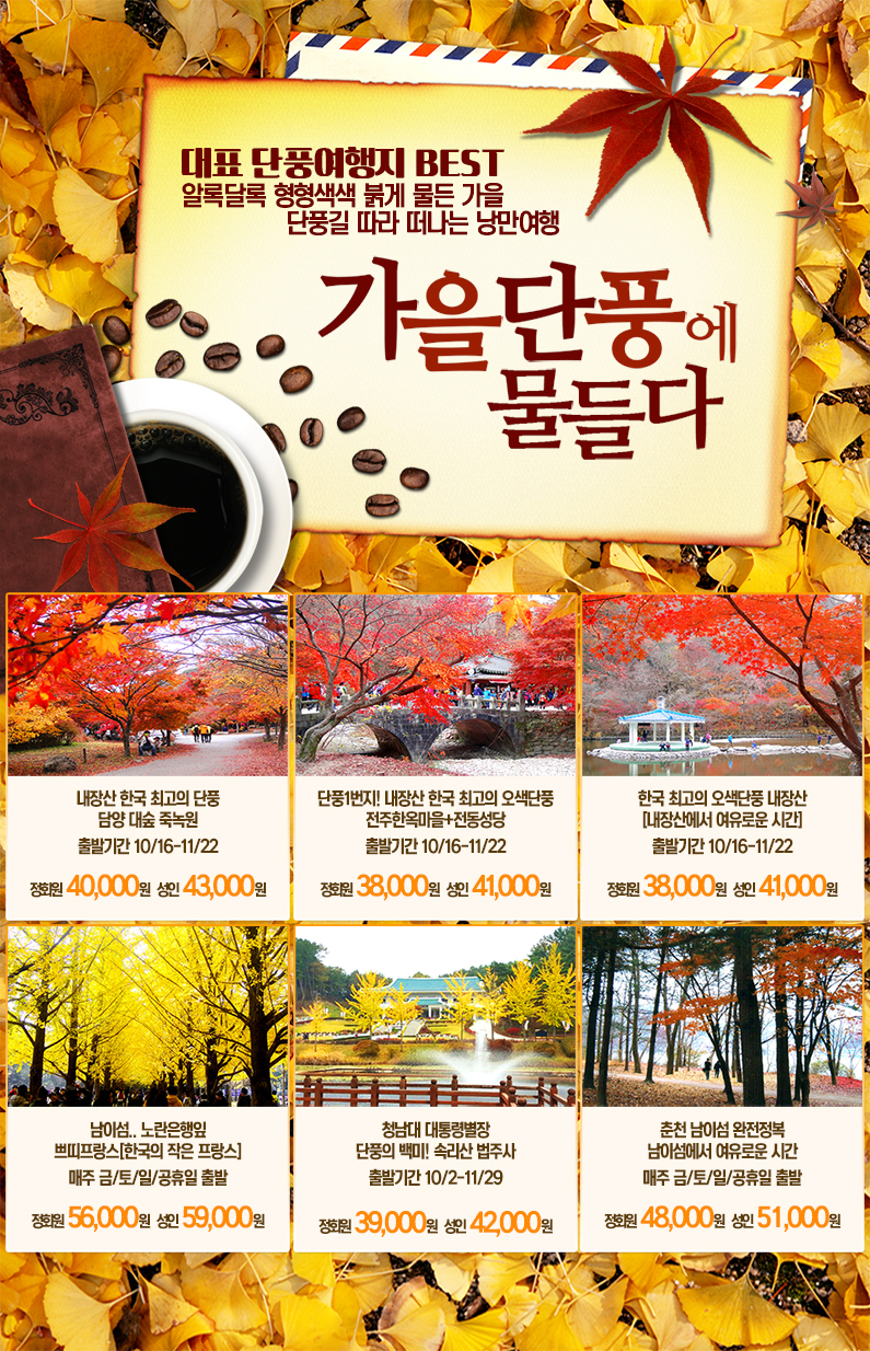 제목 대한민국 가을단풍에 물들다!! 2020 단풍여행지 BEST 등록일 20.09.25 조회 4,695