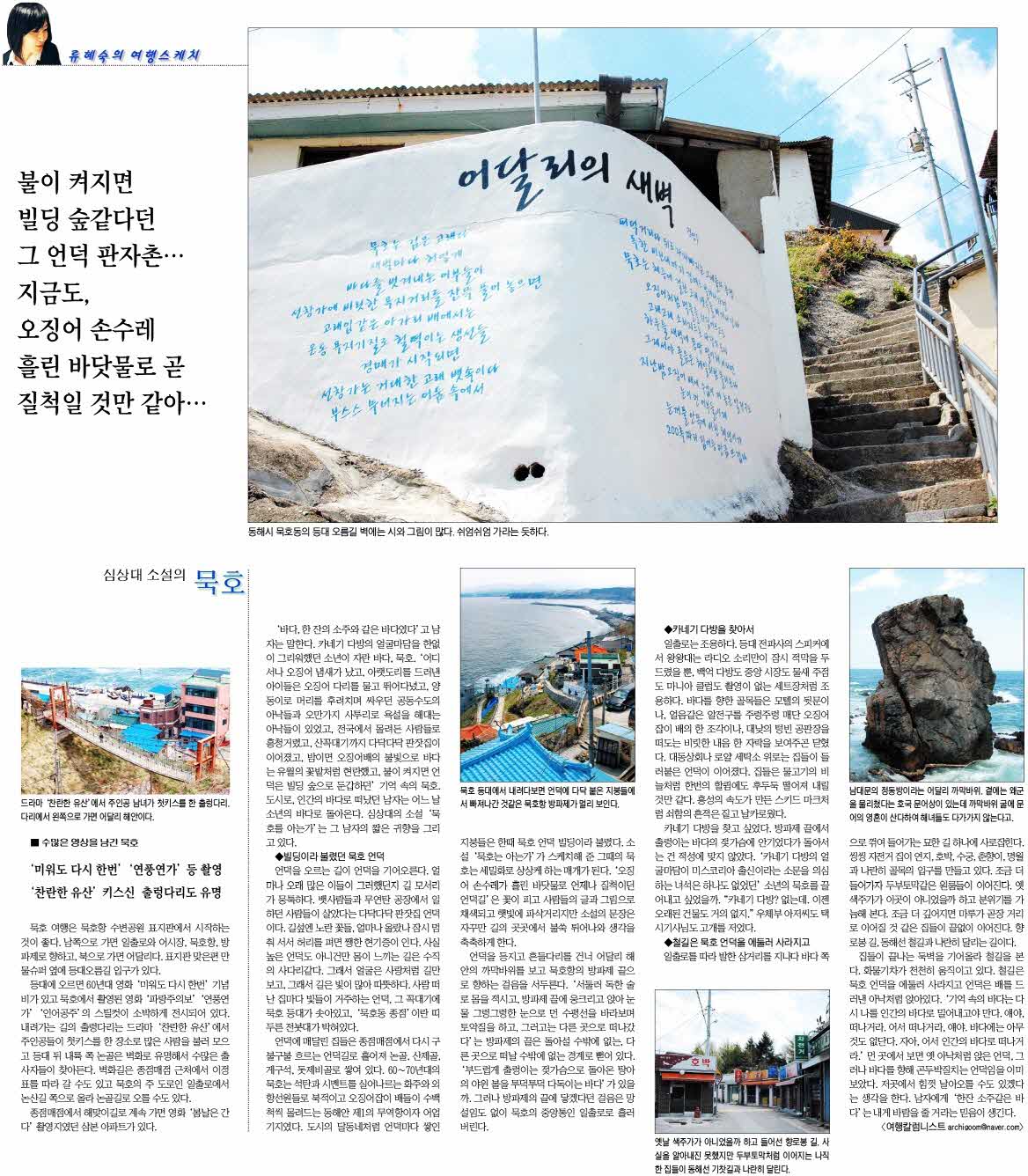 제목 동해 묵호여행[영남일보에 개재된 류혜숙의 여행스케치] 등록일 11.04.30 조회 1,735