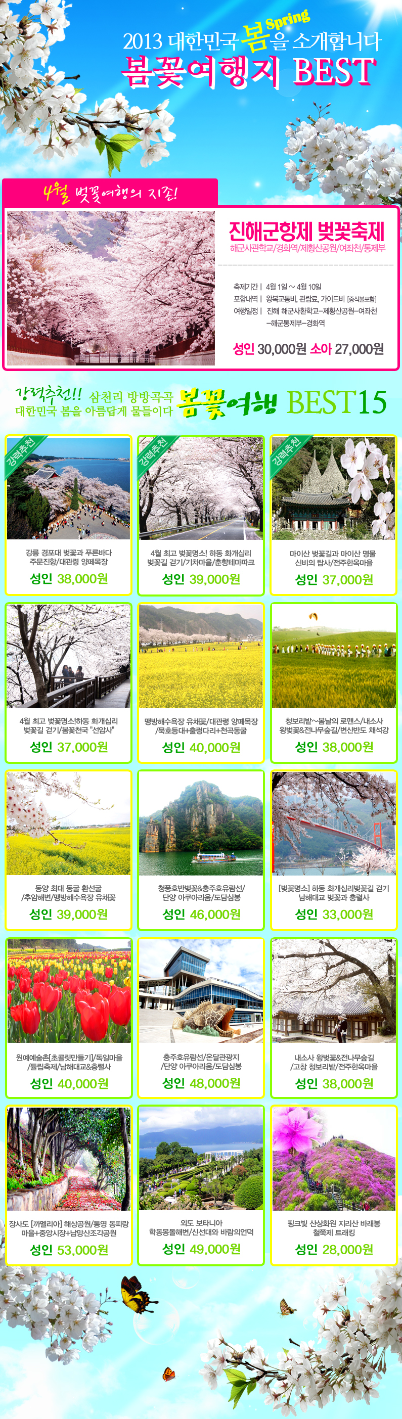 제목 대한민국의 봄을 아름답게 물들이다♬ 봄꽃여행지 BEST OF BEST 등록일 13.03.04 조회 1,474