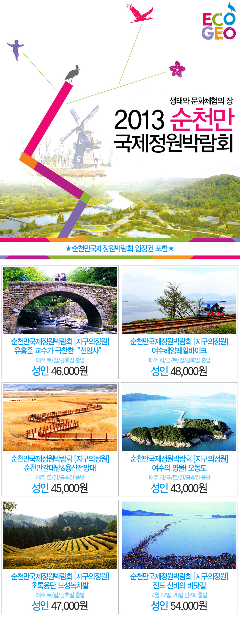 제목 1탄~6탄까지 취향따라 떠나는 여행♬ 2013 순천만 국제정원박람회 등록일 13.04.05 조회 2,610