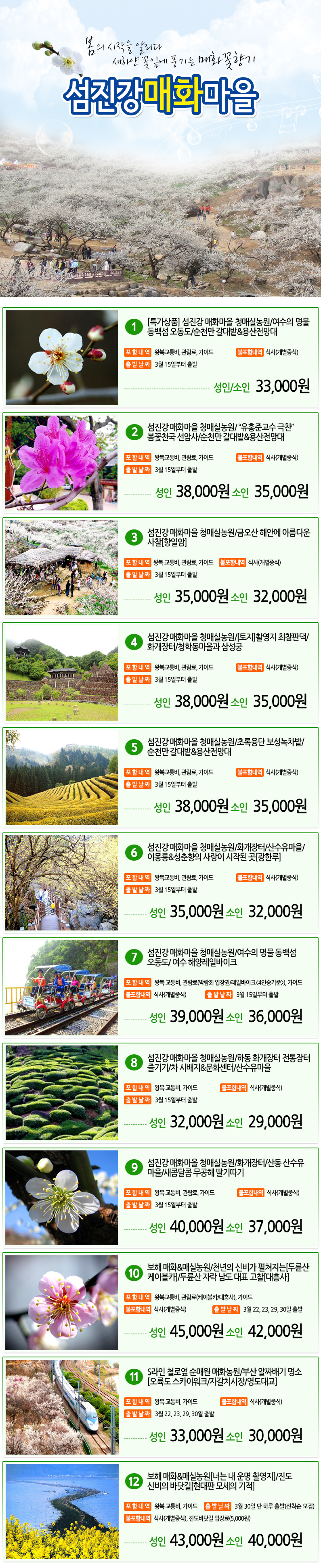 제목 봄의 시작을 알리는 매화꽃향기~♬ 2014 섬진강 매화축제 등록일 14.02.04 조회 5,265