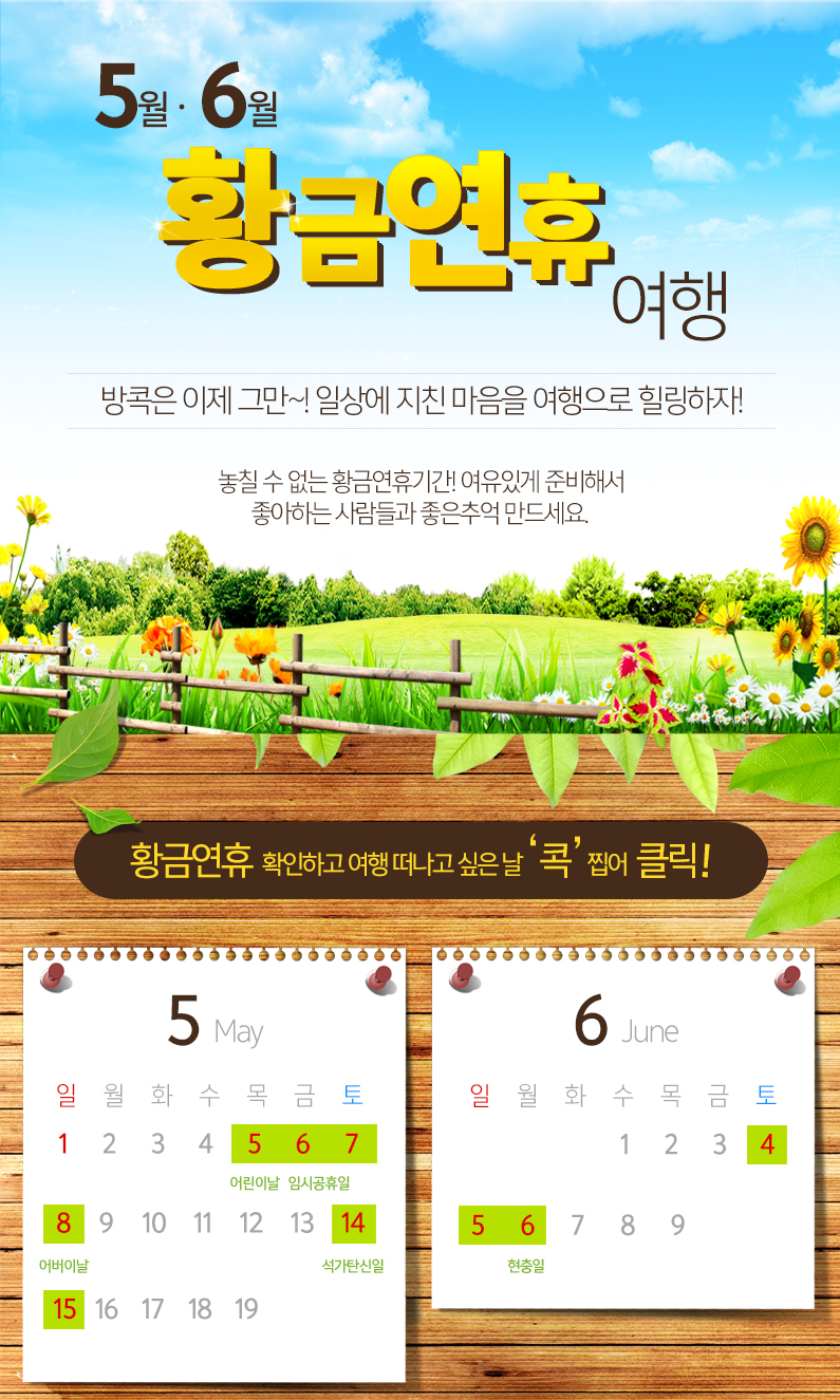 제목 ★5월 · 6월 황금연휴 여행★ 방콕은 NONO~ 여행으로 Refresh time! 등록일 15.04.17 조회 1,979