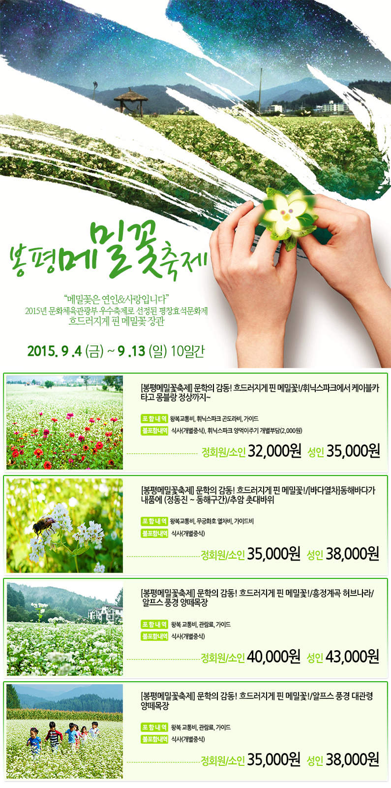제목 흐드러지게 핀 메밀꽃 장관~♬소설처럼 아름다운 봉평메밀꽃축제 등록일 15.08.07 조회 5,225