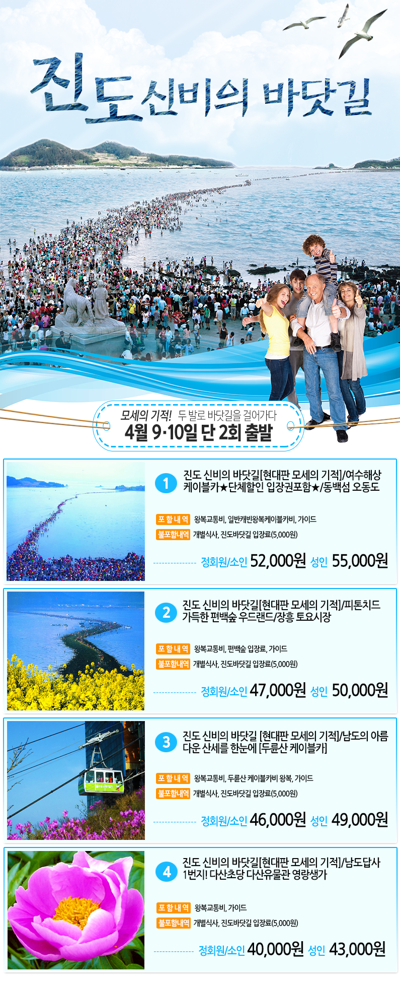제목 ★4월 9/10일 단 2회 출발★ 진도 신비의 바닷길이 열리다!! 등록일 16.03.04 조회 1,669