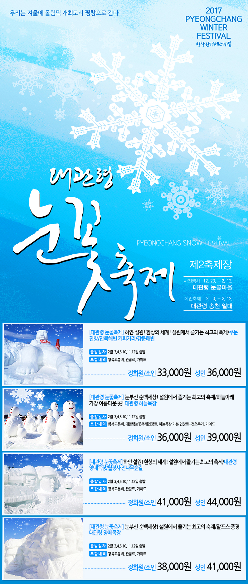 제목 [대관령 눈꽃축제] 눈부신 순백세상♡설원에서 즐기는 최고의 축제 등록일 17.01.07 조회 3,712