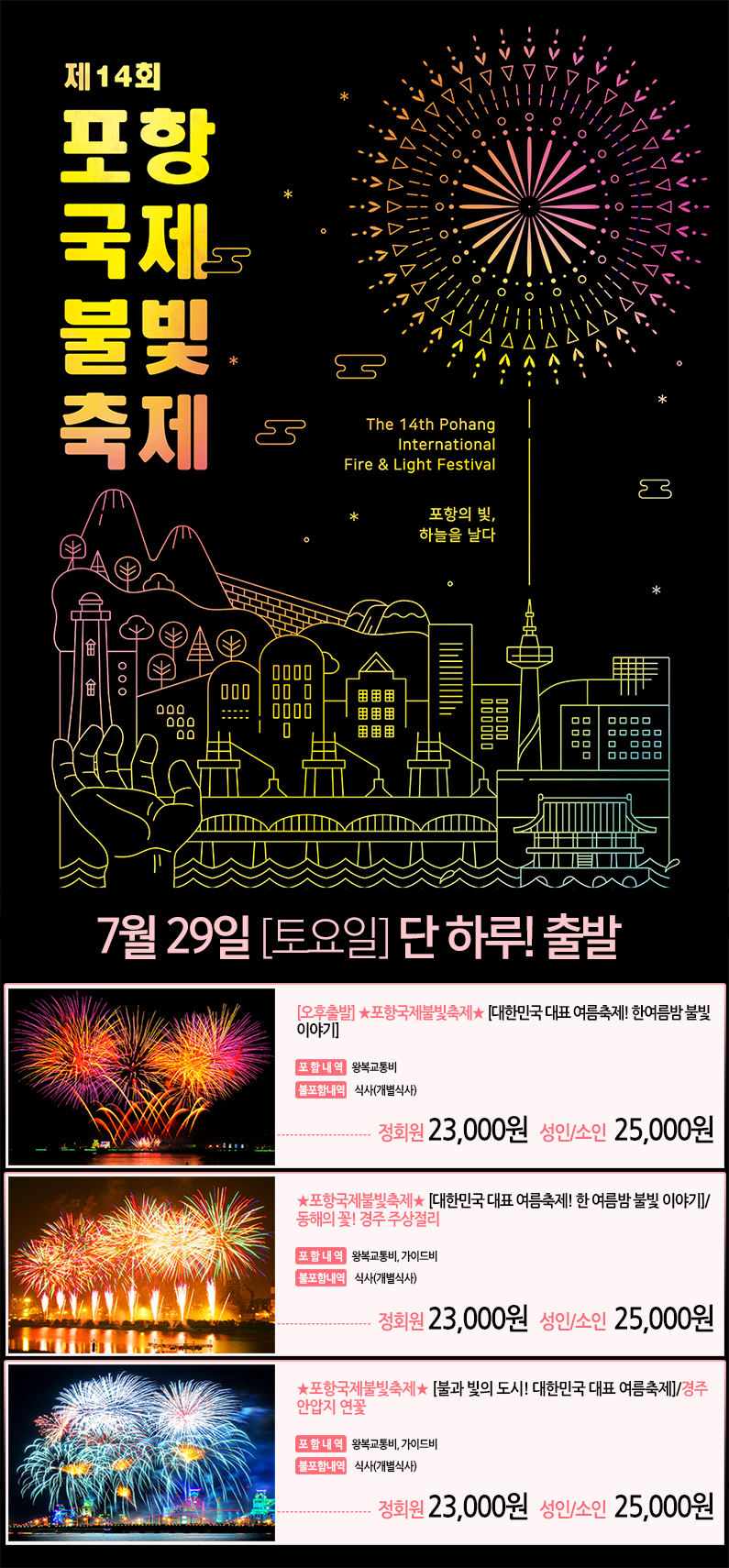 제목 ★포항국제불빛축제★ [7월29일(토요일) 단하루! 출발] 한여름밤 불빛 이야기 등록일 17.07.04 조회 5,799