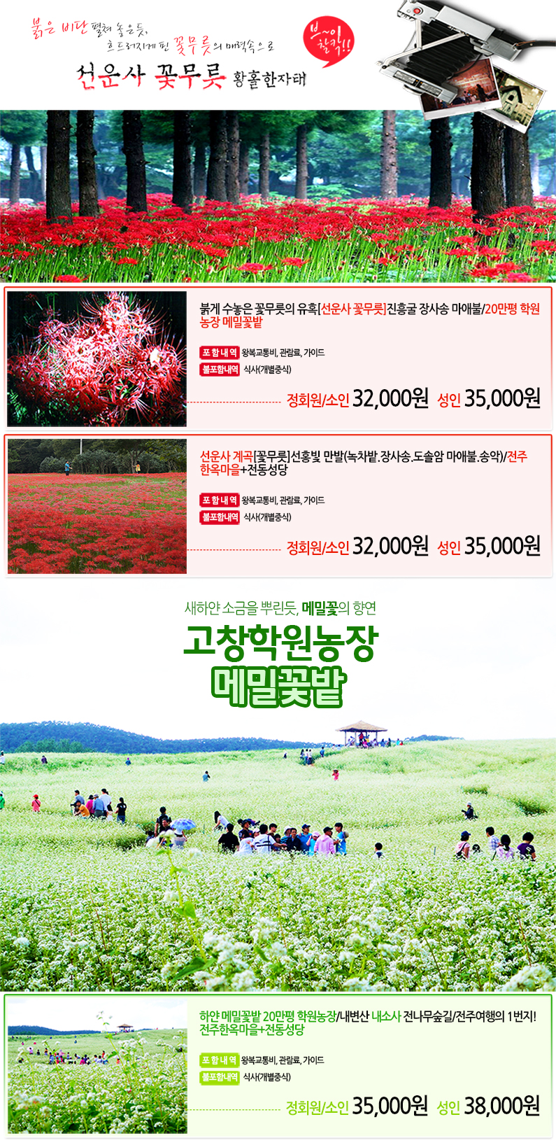 제목 붉게 수놓은 꽃무릇의 유혹 [선운사 꽃무릇] & 새하얀 소금을 뿌린 듯 [고창 학원농장 메밀꽃밭] 등록일 17.08.17 조회 7,183