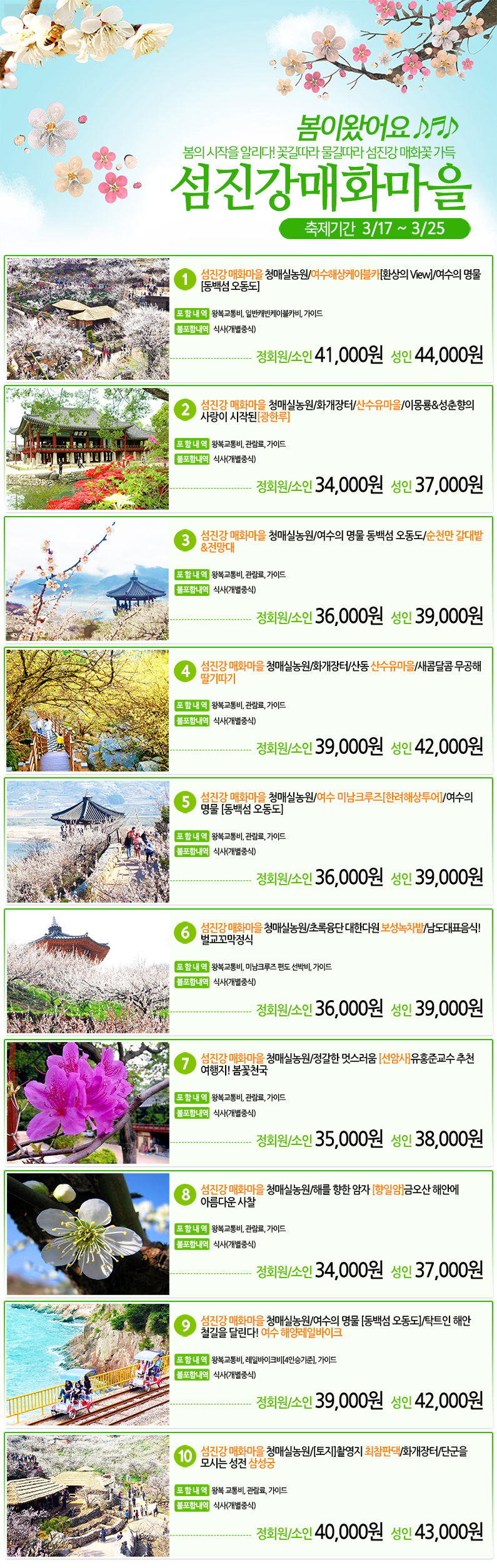 제목 봄의 시작을 알리는 매화꽃향기~♬ 섬진강 매화마을 등록일 18.02.07 조회 6,609