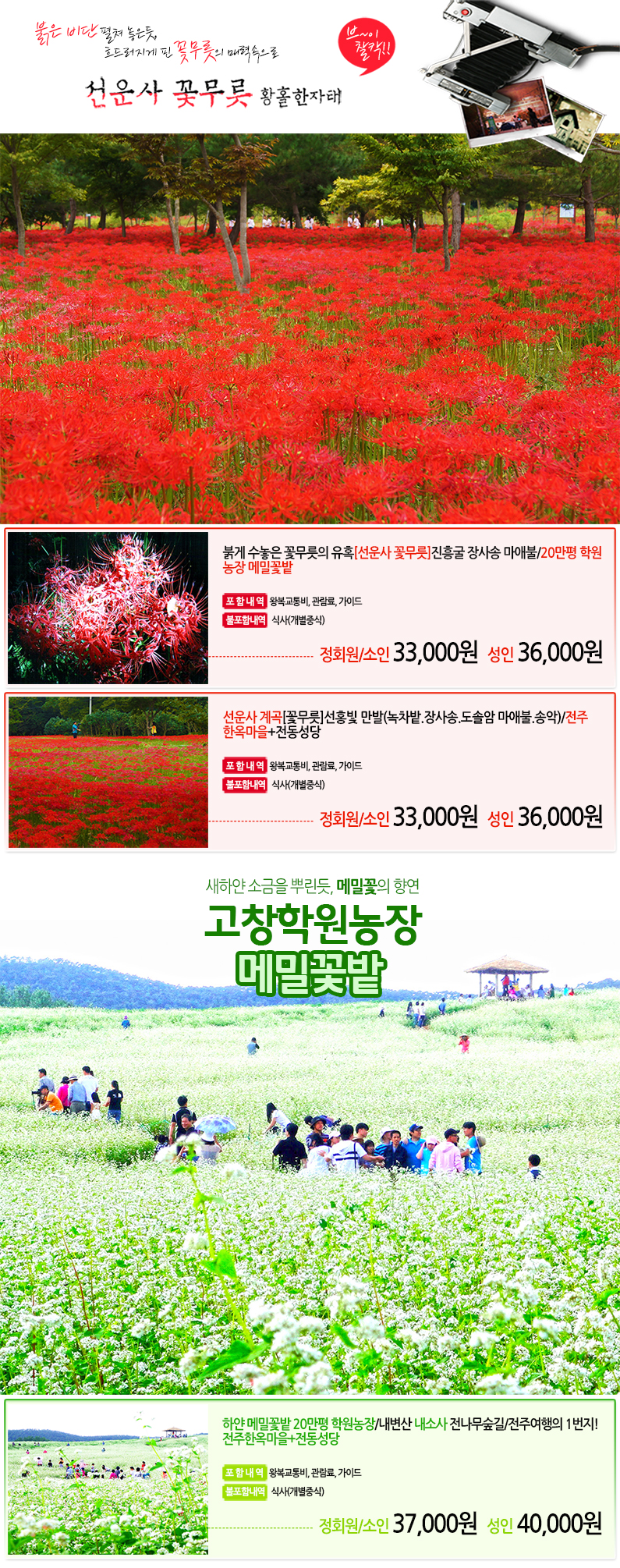 제목 붉게 수놓은 꽃무릇의 유혹 [선운사 꽃무릇] & 새하얀 소금을 뿌린 듯 [고창 학원농장 메밀꽃밭] 등록일 18.08.17 조회 4,924