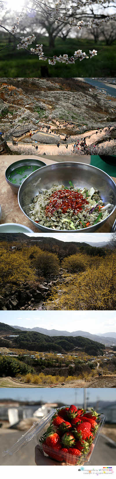 이곳저곳 여기저기서 사진 열심히 찍고 또 조은정가이드님이 사진도 찍어주시고... 여행자들에게 세심한 배려를 해주시니 정말 친절한 분이시라는걸 느낄 수 있었습니다. 만개한 매화마을을 뒤로하고 화개장터에 도착. 그리고 산수유마을 도착! 이렇게 하루동안 각기다른색의 꽃 군락과 함께할수 있는것은 행운인것 같습니다. ^_^ 거기다가 심심하지 말라고 마지막에는 딸기밭체험의 센스...! 너무나 여행지를 잘 엮은거 같습니다.