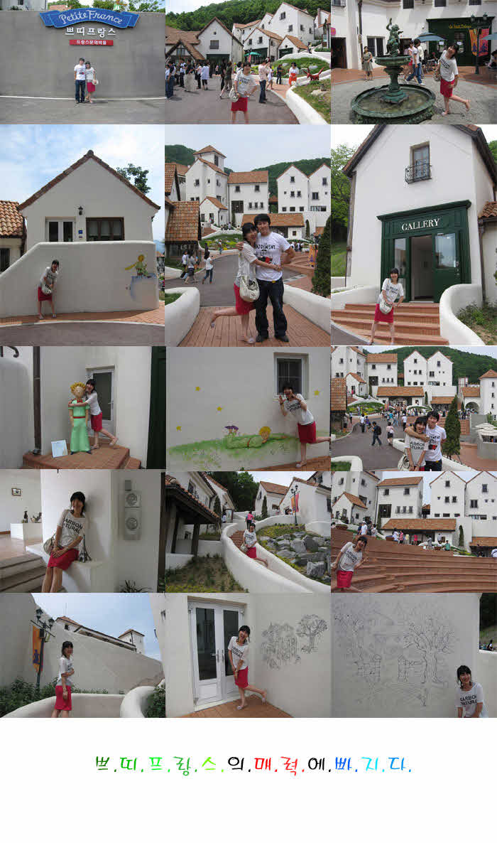 입구에서 ` 나 쁘띠프랑스 왔어~` 증명할 사진 한장 찍고 노란 뺏지보여 주고 당당히 들어가라던 가이드님 말씀처럼 우린 입장권을 끊기 위해 줄 서 있던 분들을 지나치며 으쓱하고 들어 갔습니다.