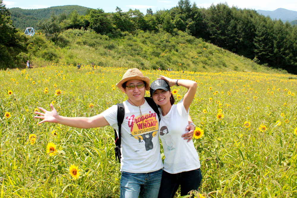 상큼한 가이드아가씨의 친절한 안내를 시작으로~ 멋진 여행일거라 예상은 했지만 남편과 나는 너무나도 만족스런 여행이였다 태백 해바라기 축제에 이어 용연동굴 그리고 정암사까지~!! 태백에 입성. 그날은 해바라기 축제기간이기도해서 덤으로 다양한 볼거리도 즐길 수 있었다 푸른 하늘아래 펼쳐진 노란 물결, 싱그러운 바람까지 결혼 100일을 축복이라도 하듯 날씨마저 우리를 기쁘게 했다 정말 일제히 같은 곳을 바라보는 해바라기를 보곤 참 이름을 잘 지었다 생각이 들었다. 해를 바라보는 해바라기처럼 ~ 우리도 그렇게 서로를 바라보자!! ^^ 꿈에서라도 그렇게 아름다운 해바라기 밭을 본 적이 있을까 광할하게 펼쳐진 해바라기들은 꼭 엄마품처럼 고요하고 따뜻하게 다가왔다 이 순간을 그림으로 남길 수 있다면, 아쉬운데로 카메라에 또 눈속에 많이도 담아왔다. 곳곳에 이름모를 풀꽃들, 하늘거리는 코스모스, 평온하게만 보이는 해바라기의 작은 수다쟁이 벌꿀들까지 그 자체로 아름다움이 되는 한장면 한장면... 정신없이 그 아름다움에 빠져들다 정신을 차릴때쯤 배꼽시계가 울기 시작했다 친절한 가이드아가씨가 미리 안내해주었던 식당으로 발길을 옮겼고 그곳에 가면 그곳의 음식을 먹으라는 진리데로~ 태백의 음식 묵밥을 먹었다 잘익은 물김치에 살얼음동동 그안에 넉넉히 담긴 초컬릿색 묵~ 상상 그이상의 맛있는 오찬! 조금은 낯설지만 최고의 묵밥이였다 다음 여행지는 용연동굴~ 동화책에서나 본듯한 색색이쁜 열차를 타고 용연동굴로 가는 길~ 열차안에서 어른이나 아이들이나 연인이나 모두 아이처럼 행복해보였다 용연동굴에서의 또다른 경험, 동굴은 처음이라 조금은 무서웠지만 ^^ 정말 입이 다물어지지 않을만큼 넓고 깊은 동굴을 보면서 자연의 힘이 정말 대단하단 생각을 했다 자연스레 만들어진 암석들은 각기 어울리는 이름이 붙여져 있었고 특히 키스라는 이름의 암석은 연인들의 촬영장소로 북적이기도 했다 관광객을 위한 서비스로~ 앙증맞은 분수와 포스느껴지는 멋진 분수까지 시원하고 눈이 즐거웠던 용연동굴~ 다음 코스는 정암사~ 여행의 마지막 코스인 정암사를 나서면서 우린 벌써 다음 주말여행을 준비하고 있다!! |