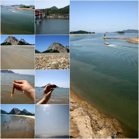 아침 일찍 버스에 올라 4시간정도 버스를 타고 군산여객선을 타고 선유도로 들어가는 배를 1시간 타고 선유도로 가는길이 생각보다 지치지 않았던 것 같습니다. 버스타고 중간에 휴게소에 한번 들렀다 가고, 배도 생각보다 쾌적한 환경이라 바닷길 구경에 시원하고 좋았습니다. ㅎㅎㅎ 도착한 선유도는 그야 말로 '섬'이였습니다. 섬에 들어서자마자 자전거를 빌리지 않고, 해변으로 가까이 가서 자전거를 빌렸습니다. 자전거를 타고 해변 왼쪽길로해서 달리는데 옆 풍경이 얼마나 멋진지, '우와'하는 탄성이 절로 나왔습니다. 조금 더 들어 가니 다리가 있었는데 다리위에서 보는 사방의 풍경은 정말 우리나라가 맞는지 의심될 정도로 반짝거리는 바다와 솟아있는 섬들이 너무 멋졌습니다. 바람도 시원하게 불었구요... 해변으로 돌아와 미리 준비해간 맛소금과 캐첩통을 사용해서 '맛조개'도 잡았어요.ㅎㅎㅎ 작은 삽으로 땅을 조금 파면 구멍이 있는데 구멍마다 캐첩통에 맛소금을 넣어 소금을 쏙쏙 뿌리면 조개가 올라온답니다. 조금 올라올때 말고 무녀도는 동네라고 들르지 않았지만 다리에는 올라가 보았답니다. 그리고 목돌해수용장까지도 자전거 타고 언덕길 넘어 힘들게 갔더니만,,, 생각보다 별로 볼것 없었어요.ㅋㅋㅋ그러나 무녀도 다리 정도는 올라가볼만 했습니다.^^ 돌아오는 길에 배타기 전, 간장게장이 1만원하길래 사왔는데, 먹어보니 괜찮았어요. ㅎㅎ 작은 게로 만들어서 아쉬웠지만 살도 꽉차고, 간장도 맛있어 밥도둑이 더군요.. 집으로 돌아오는길에 배는 더 좋았어요. 윗층에 실내 전망대 자리도 있어 좋았구요. 버스타고 오는 길엔 선유도를 꿈꾸며 한숨 잤더니, 대구에 도착이였습니다. 저는 대구여행자 클럽에서 가는 여행중에 가장 멀리 간 여행이였지만, 기대이상이였습니다.^^