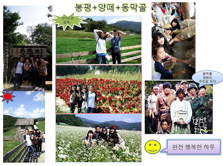 대학친구들과 함께 오늘은 봉평+양떼+동막골 코스를 여행하기로 했다.