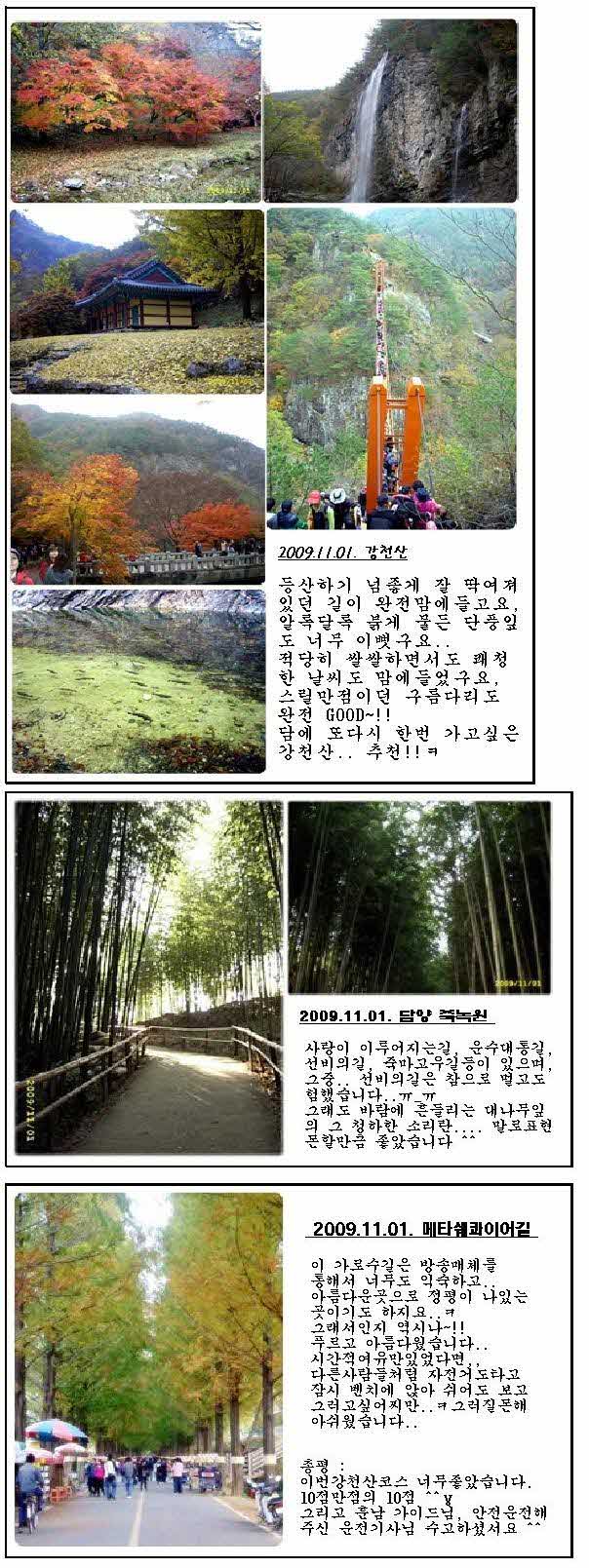 제목 사진으로보는 11월 1일 강천산 여행후기 ^^ 등록일 09.11.04 조회 511