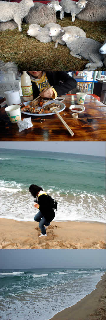 양떼목장. 보통은 푸른른 초원에 양들이 노니는 모습을 생각하는데, 우리가 간 2월 28일은 겨울의 끝자락이긴 해도 여전히 겨울인지라 새하얀 설경을 구경할 수 있었답니다. 푸른 초원의 모습을 못봐서 비교하기는 그렇지만, 설경 또한 너무 예쁜 양떼목장이었어요!! 다른분들도 대관령의 눈이 녹기 전에 한번 가보시는 걸 추천해요^^ 두번째로 향한 주문진항. 먹거리도 많고, 볼거리도 많다는 이 곳. 내리자마자 배가 고파서 수산물시장으로 향했는데요. 저와 제 친구의 원래 계획은 회를 먹는 것이었으나, 길거리에서 노릇노릇하게 구워져 우리를 유혹하는 생선구이들의 꾀임(?)에 넘어가 그녀석들로 점심을 해결했답니다. 가시면 한번 드셔보세요!! 시장에서 먹어야 느낄 수 있는 생선구이의 참맛! 거기에 강원도 특산 동동주까지 한잔 걸치니, 진정 낙원이 따로 없더라구요. 식사를 마친 후 커피거리로 유명한 안목해변으로 향했습니다. 이 곳은 해변에 커피 자판기와 커피 전문점이 죽 늘어서있어서 취향대로 고른 커피 한잔과 함께 바다를 구경할 수 있는 곳이죠. 저희는 한국에서 재배한 원두로 커피르 뽑는다는 '커피커퍼'라는 커피전문점에서 아메리카노를 주문했어요. 하지만, 여행자클럽은 역시 여행 전문가인것 같아요!!! 안목해변이 커피로는 유명하지만, 해변 자체는 별 매력이 없었는데, 10분거리에 있는 경포대로 자리를 옮기니 해변이 어찌나 아름다운지 ㅋㅋ 돌아오는 길. 개학 전 마지막 황금연휴라 차가 좀 막히긴 했지만, 가이드언니의 친절한 설명과 1호차 기사님의 나이스 드라이빙^^덕분에 편안하게 대구로 돌아올 수 있었어요. 대구여행자클럽과 처음으로 함께한 여행이었는데, 기대 이상이었어요! 3월에도 좋은 여행으로 만나요!! |