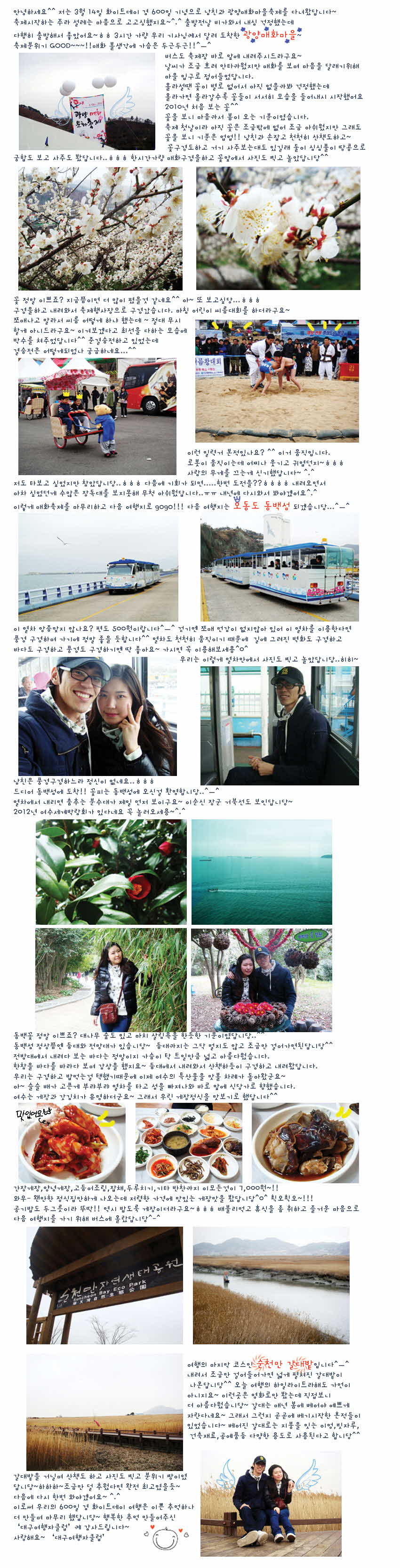 제목 광양매화축제★오동도동백섬★순천만갈대밭 등록일 10.03.26 조회 623
