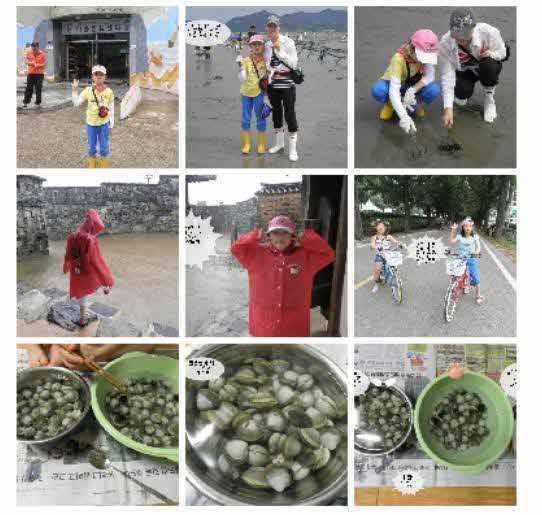 갯벌 체험을 간다는 기대에 새벽잠을 깨우고 나선 여행길~. 친절한 젊은 가이드 오빠와 정말 아빠처럼 안전하게 운전 해 주시는 기사분, 낯선 이웃과 함께 떠난 여행길에서 친구도 만나고 정겨운 이웃도 만나게 되었다. 값진 갯벌 체험 만큼이나 따뜻한 여행길이었다. 하전갯벌에 도착했을 때 코끝으로 밀려오는 갯벌냄새~ 조금 아쉬은 점이있다면 조개잡이를 했으니.. 맛난 바지락칼국수 정도를 먹고 올 수 있었으면 좋겠다. 하지만 선운산 입구에서 먹은 3000원 복분자 생쥬스는 흠흠... 쉬원하고 달콤한 기억으로 남는다. 장소를 옮겨 도착한 고성읍성은 생각보다 주위 복지 시설이 참 잘되어 있는 듯 했다. 앞에 있는 미술관도 꼭 한 번 들어가 보고 싶었는데.. 갑자기 억수같이 쏟아지는 소나기 때문에 사진 한 장 찍기도 힘들었다. 하지만 비옷을 입고 공기 좋은 곳에서 잠시 휴식 시간을 가진 것도 좋은추억으로 남는다. 다음 장소는 마지막 1박2일 촬영지였던 메타쉐콰이어 길~ 여행이란... 가끔 목적없이 떠나 막연히 지나다 만나는 절경과 후한 이웃 인심이 더운 기억속에 남는 법이다. 여행자 클럽의 첫 이미지 점수는 perfect!! 무엇보다 편안한 여행길이 되게 해 주신 인자하신 기사님께 감사드리고 사실 커피 한잔 권하고 싶었는데...그러지 못해 아쉽다. 담에 인연이 되면 기사님, 제가 맛난거 사 드릴께요~. 여행을 마치고 집에 돌아와서 살아있는 조개를 고르면서 조개가 내뿜는 물총놀이에 2시간 동안이나 아이랑 즐거운 시간을 보냈다. 다음날 아침에 시원한 조개탕 맛도 정말 좋았다. ㅎㅎㅎ 다음에는 아빠와 꼭 함께 가기로 약속했다. 좋은 추억 점하나를 남긴 이번 여행길 후기를 여기서 마친다. 혹 갯벌체험하러 가실땐... 장갑.긴 옷 꼭 챙겨가시고 여름엔 비옷을 준비하는 것도 잊지 마세용!!