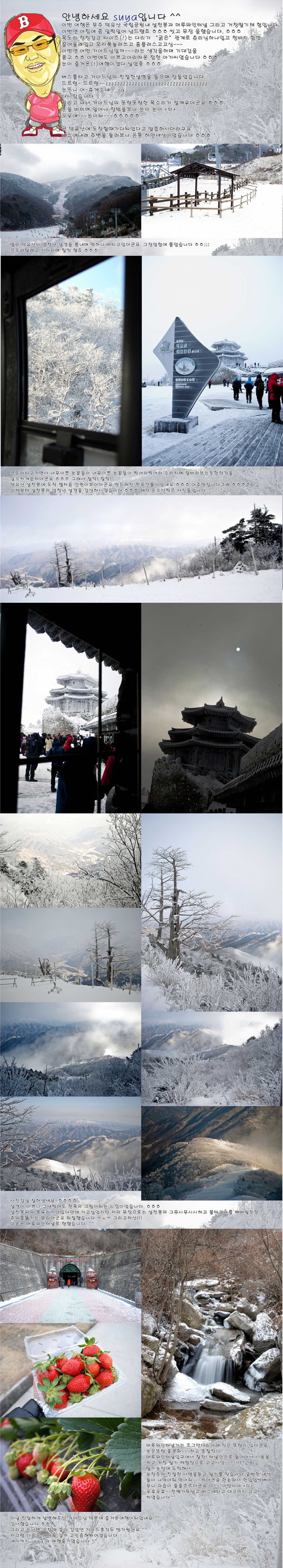 | 제목 | 12월27일 설천봉 머루와인터널 거창딸기체험 다녀왔어요 ^^(사이즈수정했어요) | 등록일 | 11.01.08 | 조회 | 871 |
