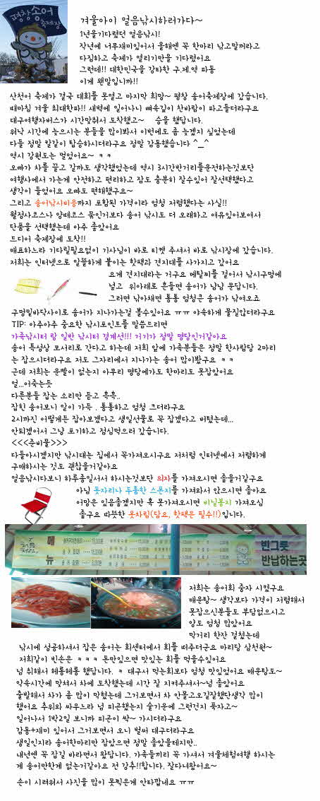 제목 겨울엔 낚시가최고~! 송어축제갔다왔어요 등록일 11.01.21 조회 765