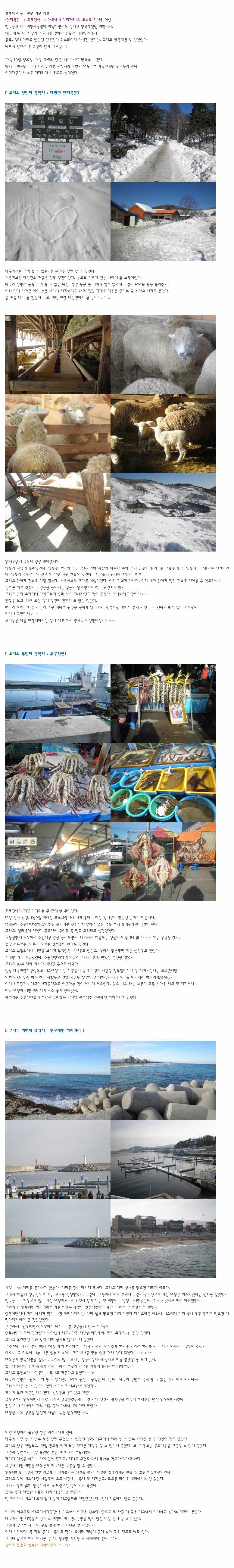 제목 행복하고 즐거웠던 겨울 여행 : 양떼목장->주문진항->안목해변 등록일 11.12.21 조회 783