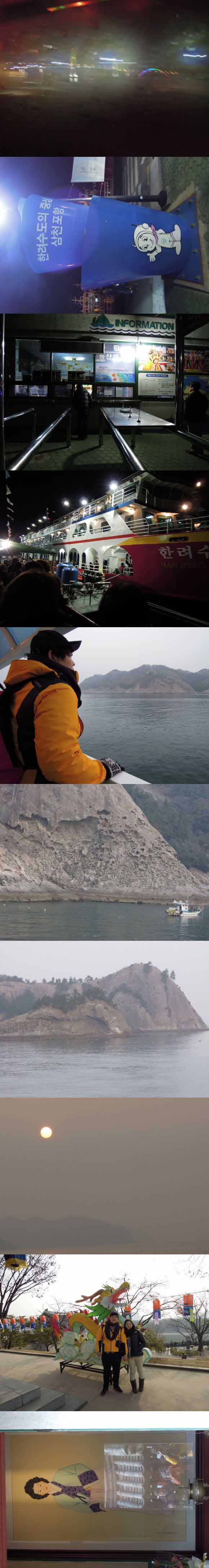 용띠인 남친과 함께 맞이하는 새해를 어떻게하면 조금 더 색다르게 느낄 수 있을까 고민하던 중에 대구여행자 클럽을 알게 되었습니다. 12월 초에 예약을 마치고는 하루하루 설레는 마음으로 기다리고 있었더랬죠. 그리고 당 일! 떨리는 마음으로 30분은 일찍 가 버스를 기다리고 있었답니다. 저멀리서 프린스관광 삼천포 7호차가 보이더라구요~ 정말 많은 분들이 함께 가시는 것 같아 신기하기도 하고 더 기분이 좋기도 했습니다. 1시 30분이 넘어 버스는 출발했고, 곧 문산휴게소? 에 들러 잠시 쉰 뒤 이내 사천항에 도착했습니다. 유람선 시간이 조금 남아 버스에서 기다리다가 밖에 풍경도 좋고, 신기해서 또 밖에나가 이곳저곳을 기웃거렸죠. 따끈한 오뎅과 여러 건어물들도 구경하며 시간가는줄 모르다가 친절한 가이드님께서 모두를 인솔하여 유람선으로 안내해주셨습니다. 배는 2척이 서있었는데, 그 중 엄청 큰 유람선으로 이끌어주시더라구요. 역시나 '1000명이 함께 즐기는 선상해돋이는 뭔가 다르지.' 라는 생각이 들더라구요. 그렇게 2층으로 가 따뜻한 자리를 맡아 앉고는 사진도 찍고 이야기도 나누다보니 곧 7시가 되었습니다. 갑자기 시끌시끌하더니 사람들이 곧 밖으로 나갔고, 저희도 따라갔죠. 사진을 찍으려는 많은 분들과 또 새해 맞이에 한껏들뜬 우리를 비롯한 많은 분들 사이에서 함께하는 기쁨을 느끼며 해를 기다리고 있었습니다. 하지만 .. 구름이 꽉 낀 하늘은 예정시간인 36분이 지나도록 얼굴을 들어내지 않았고.. 아쉽지만 그래도 좋은 경험을 했다 생각하고 배 이곳저곳을 둘러봤습니다. 3층에 가니 방송이 더 잘들리더라구요. 친절한 선장님의 안내에 따라 곧 화력발전소와 코끼리 바위를 지났습니다. 선장님의 재치있는 설명과 함께 들으니 더 귀와 눈에 쏙쏙 들어오더라구요. 그리고는 날이 너무 추워 1층에 휴게실에서 잠깐 앉아있는데 갑자기 '해떳다' 하는 어느 아저씨의 말에 뛰어나가보니 벌써 해가 중천에 떳더라구요. 이럴수가.. 아쉽긴 했지만 그래도 남자친구와 함께하는 2012년 첫 해가 따듯하게 느껴지고 고맙게 느껴졌습니다.(비안온게 어디야~하며 긍정적으로 생각하기로 했죠^^;) 그렇게 또 따듯한 에너지를 받아 다시 선착장에 내렸습니다. 선착장 바로 앞에 식당에서 뜨끈하고 칼칼한 매운탕을 먹을 수 있었는데.. 아 그맛은 정말 잊을 수가 없네요~ 버스타고, 배타고 조금은 지친몸을 사르르 녹여주는 따끈한 아침밥에 기분좋게 식사를 마치고는 잠시 버스에 기대어 졸다보니 또 다른곳에 도착해 있더라구요. 항상 자가용만 가지고 여행을 하다가, 버스에 몸을 실고 다양한 곳에 데려다주는 이런 여행상품을 처음 경험해본 저희는 참 좋은 것 같다고 다음에도 다시 여행을 가보자고 입이 마르도록 칭찬을 했답니다. 어쨌든 그리고는 진주성에 도착을 했습니다. 첫날부터 날은 어찌나 좋은지, 그리 춥지도 않아 산책하기 좋았습니다. 논개의 사당과 김시민장군의 동상을 보며 경견한 마음을 한 번 더 가질 수 있었고, 진주성 안에서 볼 수 있는 건축들은 선비의 지혜를 또 느끼게 해주었습니다. 종이로 만든듯한 용3마리는 또 한번 임진년을 기억하게 해주는 좋은 볼거리였구요. 방명록도 적고 잠깐 강내음도 맞고는 또 다시 버스를 탔습니다. 그리고는 또 잠깐 머리를 기댔더니 벌써 대구라네요^^; 그렇게 대구에 일정과 비슷한 3시 전에 도착했습니다. 그리곤 집에와서 저녁 늦게까지 뻗어버렸답니다.하하하 지금 생각해보면 꿈만 같은데요. 조금 빡빡한 일정이었지만, 새해를 맞이하는 설레는 마음과 좋아하는 사람들. 좋은 에너지를 가지고 떠난 여행은 여행객 모두에게 좋은 기억으로 남을거라 생각해요. 물론 저희도 그렇구요. 좋은 추억 만들어주신 대구여행자클럽! 고맙고, 친절한 서비스와 유익한 코스 감사합니다~ 올해 모두 새해복 많이 받으시길 바랄게요^.^ |