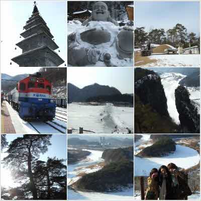 오랜만에 고등학교 친구들과 여자3명이 뭉친 날이었지요. 여자 3명이 모이면 접시가 깨진다라는 말을 증명한 날이기도 했구요.^^ 2월 5일 새벽에 부리나케 일어나 버스탑승장으로 갔지요. 왠지.. 수학여행 가는 기분이랄까? 이것저것 간식도 사고.. 놀꺼리도 준비하고..ㅋㅋ 드디어 버스탑승! 가이드님의 출발신호(?)와 함께 우리의 여행은 시작됐지요. ^ㅡ^ 가는동안 아직 새벽인지라.. 버스내에 불을끄고 모두 잠시 휴식!.. 하지만.. 저흰 들뜬 맘을 추체못하고 째잘째잘 떠들어대고 먹어대고...ㅋㅋ 같이 여행하신분들께 죄송하긴 했지만 신난 우리들을 말리는건 불가능 이었겠죠.. (그러니 다들.. 눈감아 주신거겠죠? ^^;; ㅋㅋ) 휴게소에 잠시 들른뒤.. 생각보다 이른시간에 정암사에 도착했더랬지요.. 수마노탑까지 올라가는 길이 운동부족인 저희들에게 아주 버거운 일이었지만... 그래도 대구에서 자주 볼수 없는 눈구경 실컷 하며 올라가니 힘든건 생각나지도 않더라구요.^^ 탑에 올라가서 남는건 사진뿐이다!라는 사명감에 연신 찰칵찰칵! 찍어대고.. 여기서부터 서보미 가이드님의 열정을! 보게 되었지요! 탑에서도 열정적으로 사진을 찍어주신다 싶더니.. 탑에서 내렸왔을때.. 완전 깜놀했더랬지요!! 정말정말 왠일입니까!! 눈이 발목까지 쌓여 있는데 서슴치 않고 들어가서 사진을 찍어주시지 뭡니까!! 그것도 몇명한테만이 아니라.. 전원에게요!!! 발목까지 오는 어그부츠를 신고 말이죠.. (어그부츠. 눈에 오래있으면. 물 스며들어옴.. 그리고 눈에 푹 젖으면 버려야됨..) 프로정신이 대단하다고 감탄하면서 정암사의 구경을 마치고.. 민둥산역으로 이동했죠.. 민둥산 역에서 영월역으로 향하는 길에 펼쳐지는 풍경은.. 정말 끝내줬죠~ 영월 도착후.. 기다리고 기다리던 점심시간! 각자 자유식사기 때문에 저희들은 가이드님의 추천맛집으로 향했지요. "곤드레 밥"을 먹었는데, 추천집이라 그런지 역시! 곤드레가 향긋하니 넘 맛있었어요.. 저희는 다행이 단체손님들이 들어닥치기전에 식사주문을 해서 일찍 밥을 먹을수 있었는데.. 다른분들 몇분들은 타이밍을 놓쳐.. 안타까운 상황이 연출됐었지요.. 이때도 가이드님.. 본인 책임도 아닌데.. 어찌나 미안해 하시던지.. 제가 다 안쓰러웠답니다 ㅡㅜ (사실.. 그분들은.. 다른데 기웃기웃 돌아다니다가 늦게 식당안으로 들어오신분들인데 말이죠..) 식사후.. 식당앞에 있는 단종정릉을 들러보았죠.. 이건 여행일정에는 없었지만.. 빛의속도로 식사를 마친 저희들에겐 남는건 시간뿐.ㅋ 다음코스인 청령포도 단종유배지였기에 겸사겸사겠지요.. 거기다 소화도 시킬겸.. 이곳저곳 30~40분가량 둘러보니 어느덧 출발할 시간! 왠지 뭉클한 맘을 안고 다음 장소로! 원래는 청령포를 먼저 들러야 하니.. 도로공사(?)때문인가 해서.. 정말.. 가히.. 절경이란 말이 절로 나오더군요.. 여행일정표에 나와있던데로 정말 한폭의 한국화를 보는듯한.. . 절벽을 앞에두고 넘어지기도 했지요.. 카메라와 함께~ 으악!! 내 카메라!! 속으로 외쳤지만.. 놀란나머지.. 그냥 벌떡 일어났어요.. 물론 제친구들도 사색이 되었다는.. 절벽앞이니까요.. ㅋ (여기서 잠깐! 전 혼자 넘어진것이 아니라.. 어떤 아저씨의 돌발행동에 인해 부딪혀서 넘어진것이에요..) 미끄러운 얼음위를 소리질러대며 겨우겨우 이동~~ 아직도 후덜덜~~ 하지만 여기서도 천하무적 가이드님은 날라다니심~ ㅋㅋ 청령포에는 단종의 역사를 따로 설명해주시는 자원봉사선생님이 계시더군요.. 구구절절한 사연을 단종유배지에 직접와서 들으니.. 다들 경건해 졌지요. 이어서 청령포에 있는 600년된 관음송도 보고, 망향탑도 보고.. 당연히 사진도 찰칵하고~~ ㅡㅡ;;; ㅋ 다시 후덜덜 강의 거대한 얼음판을 건너~ 마지막 장소인 한반도 지형으로 이동~ 이때부턴 거의 모든 사람들이 기진맥진이지요.. 이번 모든 여행지엔 평지가 없었으니까요.. 드디어 한반도지형에 도착! 250m정도 걸어가면 볼수 있었어요.. 큰 오르막은 없었는데.. 어설프게 녹은 눈때문에 다들 고전을 면치 못했네요.. 저희 셋도 거북이 걸음으로 갈수 있었죠.. 도착하자마자! 왜 한반도지형이라 부르는지 단번에 알수 있었어요!! 신기할 따름이었어요~!! 마지막 코스라고 생각해서 인지... 보는 내내 아쉽기도 하고.. 지친 사람들을 지나치고 쌩쌩하신 가이드님은 역시나 이곳에서도 프로의 모습을! 언덕들도 위험하고 그랬는데.. 어느 한사람 빼놓지 않고 다 사진을 찍어주셨죠^^ 모든 여행을 마치고 집으로 돌아오는길... 다들 약속이나 한듯, 기절수면을 몸소보여주셨죠~ 이번처럼 즐거웠던 여행은 처음이었습니다.^^ 이번처럼 열정적인 가이드님도 처음이었구요. 정말 복받으실꺼에요. ^^ 담에도 기회가 된다면 서보미 가이드님과 함께하고 싶네요. 여기까지.. 2월 5일 영월여행후기였습니다.^^ 다들 행복한 여행 되세요.^^ |