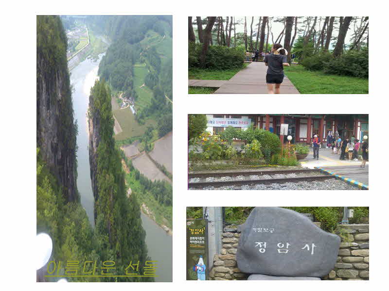 굉장히 타이트한스케줄이라 많이피곤했어요 영월 선돌을시작으로 청령포 정암사 한반도지형까지 너무많은 영월을알았어요 단연 선돌이 제일처음보아서그런지 너무 좋았어요 기암괴석이란말이왜있는지알았어요 점심은곤드레밥대신 김치찌개 먹었는데 너무 맛있어서 밥한공기를순식간에비웠네요 한가하진않지만 단시간에 영월명소를 다 눈에 담아왔어요 소중한추억으로남을듯합니다 가이드분과 기사님도 감사드려요~~^^* |