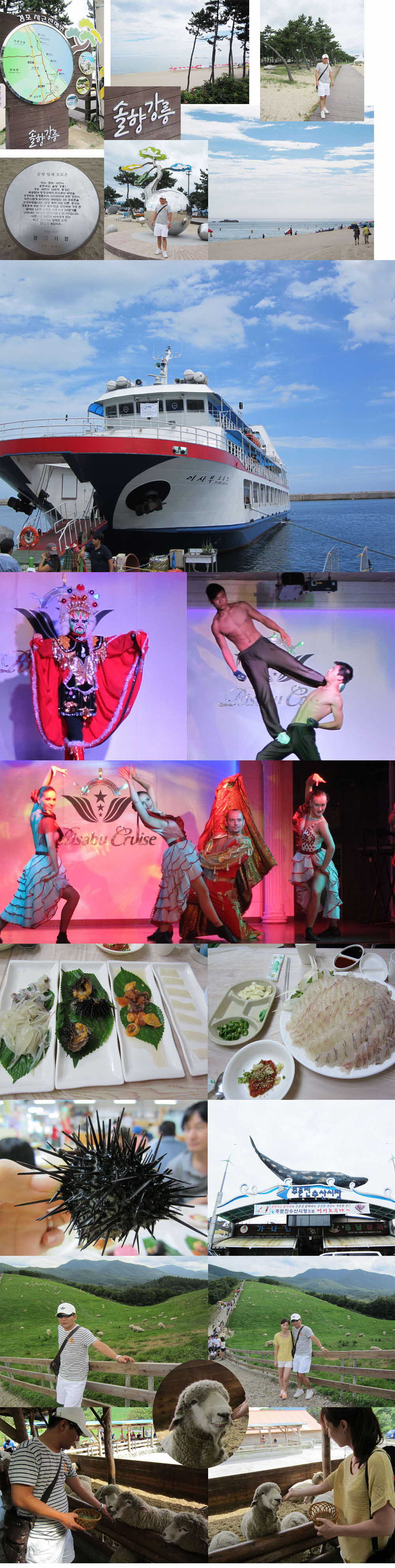 구름이 좀 있었던 날이었지만 경포해변의 푸른 바다빛은 잊을 수가 없네요. 바다와 마주보고 있는 송림병풍은 마치 숲속에 온 것처럼 고개만 돌리면 바다와 산을 동시에 느낄 수 있는 멋진 운치를 가진 경포해변~!!!! 아!이사부크루즈 -------* 맛나는 점심~!!! 오예 -------* 대관령 양떼목장 ------* 일상을 탈출하고픈 많은 분들께 강추!!!!! |