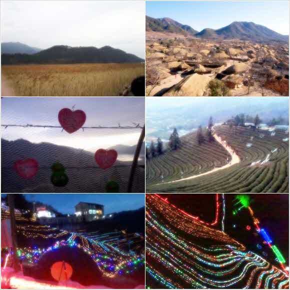 저희가 도착했을 때 불빛이 아직 켜지지 않아 그냥 녹차밭을 보았는데..정말 크더라구요 ㅎㅎㅎ 어린아이들이 녹차잎을 따서 냄새 맡는 것을 보고 저도 모르게...똑같이 따라 해봤는데..별다른건 못 느끼겠더라구요 ㅎㅎ코가 얼어서그런지 ㅎ