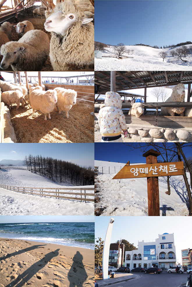 시간이 안맞아서 친구들과 강원도만 연달아 몰아서 놀러갔다왔네요~ㅎㅎㅎㅎ 예전부터 너무 가고싶었던 양떼목장 ㅠ,ㅠ 크리스마스날 갔다와서 특히! 더 좋았어요~ㅎㅎㅎ 양을 너무 보고싶었는데~~ 입장료에 건초주기 체험이 포함되어 있어서 ㅎㅎㅎㅎ 조금씩 건초 주면서 양을 가까이서 볼 수 있어서 너무 좋았어요~ ㅎㅎ 가족단위로 온 사람들도 많이 보이고~ㅎㅎ 그리고 체력이 좀 더 좋았더라면, 양떼목장 산책길을 다 둘러보고 설경을 구경했으면 좋았을껄이라는 아쉬움도 듭니다~ㅎㅎ 이건 다음에 도전?! 그리고 주문진항에서 맛난 신선한 회에 매운탕으로 점심을 먹고!ㅎㅎㅎㅎ 안목해변 커피거리에 가서, 가이드님이 추천해주신 카페에서 커피도 한잔했어요^^