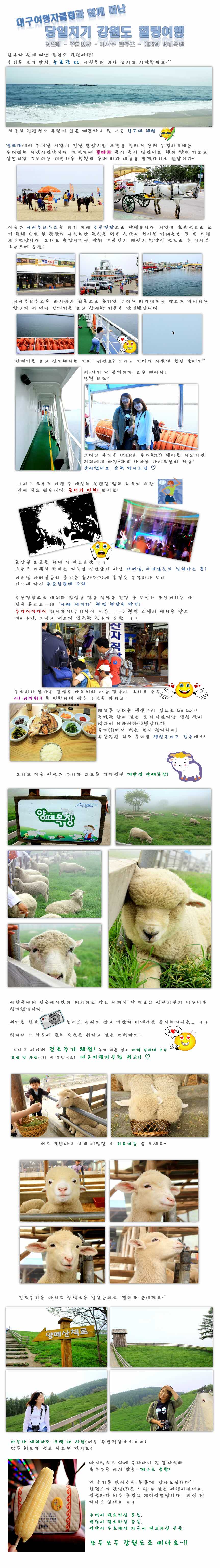 제목 사진이 있는 강원도(양떼목장-이사부크루즈 등) 여행 후기 등록일 13.06.19 조회 693