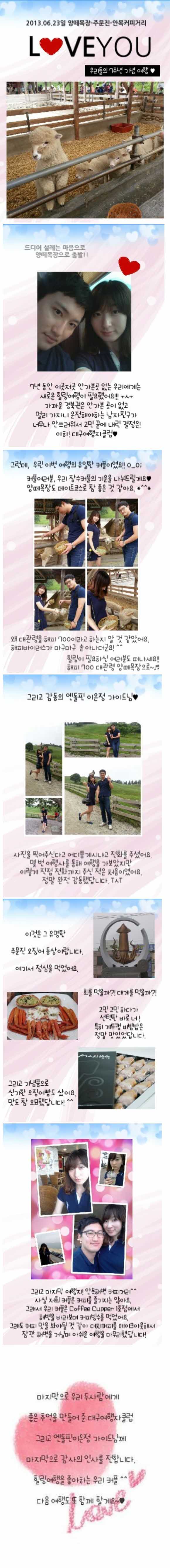 제목 7주년 기념여행♥ - 양떼목장/주문진/안목해변커피거리 등록일 13.06.25 조회 513