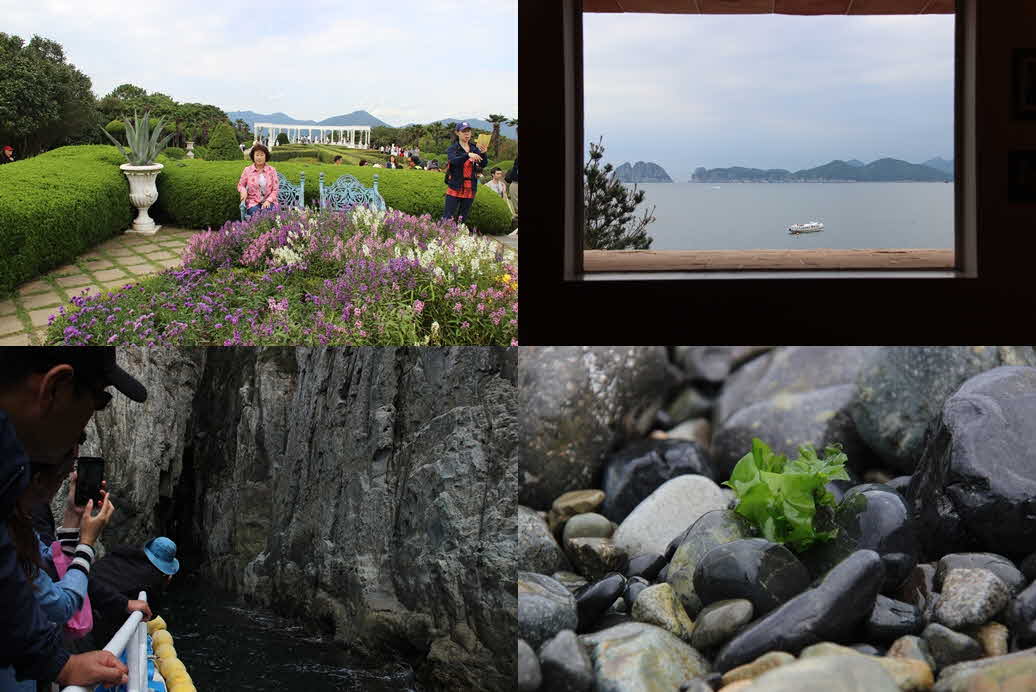 비너스가든, 겨울연가 촬영지인 리스하우스. 열대식물과 아름다운꽃으로 섬전체가 이국적인 정원으로 꾸며져 베르시이유 궁전의 정원을 걷는듯 하고 아름다운정원은 푸른 바다와 대비가되어 외도에서 바라본 해금강은 가히 환상적이었다 척박한 섬을 환상의섬 외도 보타니아로 만든 이창호 최호숙 부부의 자연에대한 사랑과 집념과 노력이 존경스럽고 경이롭다