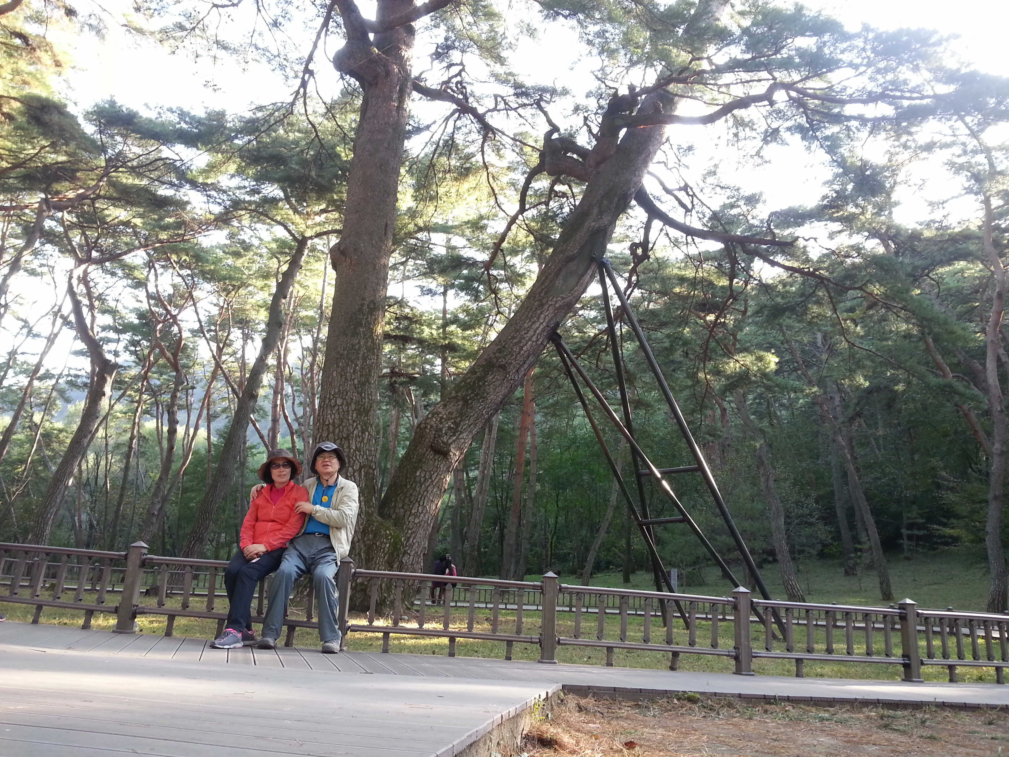 10월12일 민둥산 억새 축제와 다시 찾고 싶었던 영월 청령포를 향해 대구여행자클럽 버스는 출발의 시동을 걸었다. 청령포 영월군 남면 광천리 남한강 상류에 위치해 있다. 동,남,북 삼면이 물로 둘러싸이고 서쪽에는 험준한 암벽이 솟아 있어 나룻배를 이용하지 않고는 출입이 불가능한 마치 육지 속의 섬 같다. 이곳은 조선의 6대 왕인 단종이 그의 삼촌 수양대군에게 왕위를 빼앗기고 유배되어 머물던 곳이다. 잘록한 말굽 모양의 도망가기 어려운 유배지로서 천혜의 조건을 갖춘 곳이다. 옛날 나룻배 대신 우리 여행단 40명은 엔진을 단 통통배를 타고 강바닥에 내렸다. 규모가 꽤 큰 송림이 나타났다. 청령포 소나무숲이다. 이 송림 속에 단종이 귀양살이를 했던 단종어소가 있다. 귀양시절 단종의 생활을 한눈에 볼 수 있도록 재현해 놓은 단종어소는 본채와 관노들이 묵었던 사랑채로 나뉘어 있었다. 부엌엔 관비의 밀랍 인형이 놓여 있었고 본채 왼쪽에는 절을 올리고 있는 선비의 밀랍 인형과 서탁을 놓고 단정하게 앉아 있는 단종의 밀랍 인형이 있었다. 담장 밖의 소나무들은 마치 폐위된 단종에게 절이라도 하듯이 어소를 향해 휘어져 있었다. 어소를 벗어나 송림 속으로 들어가니 거대한 소나무 한 그루가 우리 일행을 반긴다. 하늘을 향해 두 갈래로 뻗어 오른 이 소나무는 유배시절 단종이 올라 앉아 시름을 달래곤 했다고 한다. 단종의 비통한 모습을 직접 보고, 눈물을 심키는 소리를 들었다 하여 관음송이라 부른단다. 이곳에서 정준철 가이드가 멋지게 사진 한판을 찍어 주었다. 층층 나무 계단을 올라가니 단종이 서울을 바라보며 시름에 잠겼다는 노산대와 서울 낙산에 남기고 온 부인 정순왕후를 그리며 쌓았다는 돌탑인 망향탑이 있었다. 노산대와 망향탑에서 강아래쪽을 바라보면 청령포를 휘돌아 나가는 물줄기가 장관을 이룬다. 이곳에서 정준철 가이드가 낙조를 배경으로 한 우리 부부에게 두 번째의 사진을 찍어 주었다. 역사 공부도 하고 멋있는 추억을 간직하게 해 준 다시 찾은 청령포 여행 참 멋있었다.