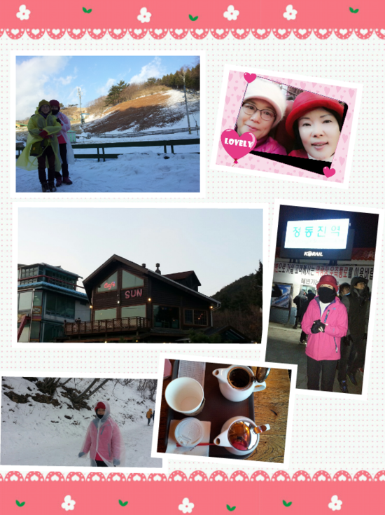 정동진 새해 해맞이 밤9시 출발 새벽3시경 도착 후 해돋이 시간 7시30분까지 도로교툥사고로 또 버스에 2시간 이상 갇힌 후 출발 한국의 알프스, 잔설이 남아 있어 좋았했던 것도 잠시 긴 시간 우리에게 제공된 음식은 잊지 못할 추억의 여행 만들고 왔다...