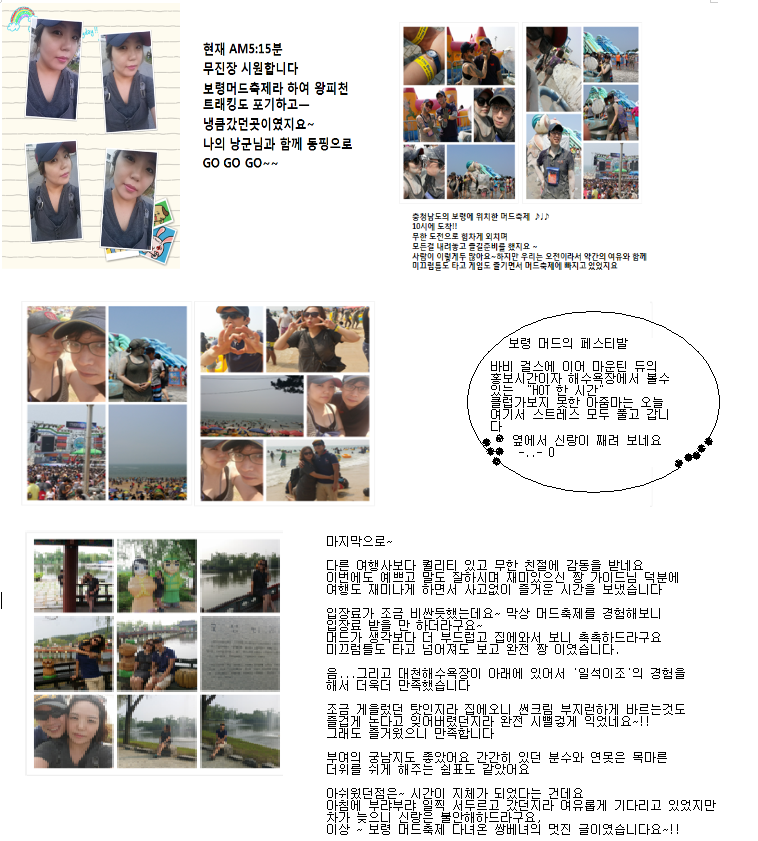 서해번쩍동해번쩍 열심히 고군분투하셨던 짱가이드님께 정말 감사하다고ㅡ전해드리고 싶네요^______^ 보령 머드축제와 궁남지 궁남지는 경주 안압지보다 훨~씬 더 이뻤습니다 |