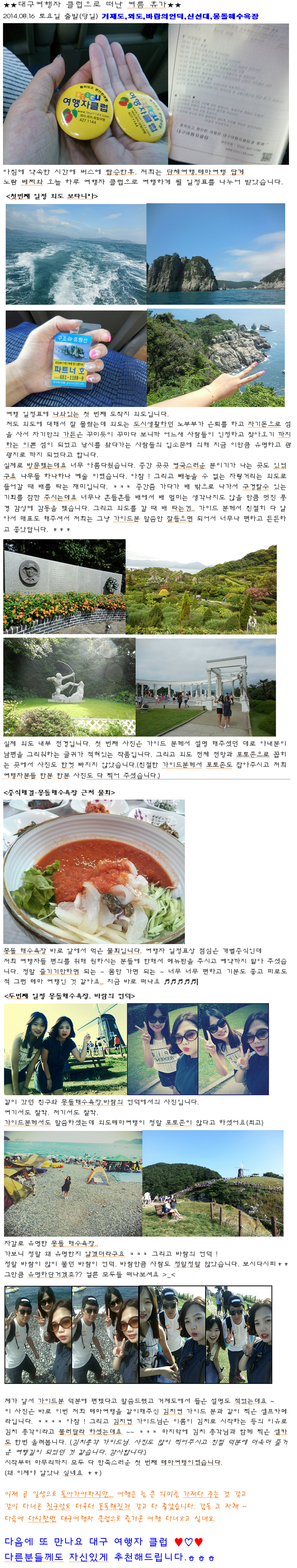 제목 외도 보타니아/학동 몽돌해변/신선대&바람의 언덕(당일여행) 등록일 14.08.20 조회 543