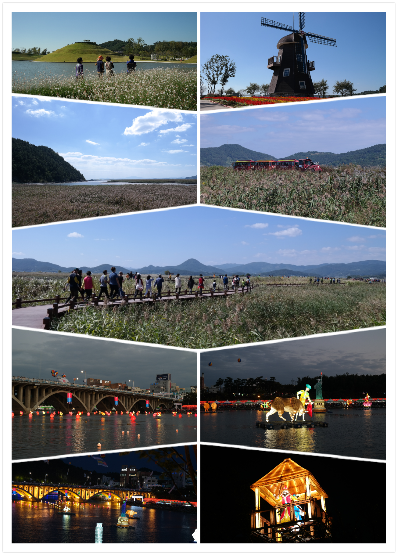 순천만을 다녀왔습니다. 정원박람회는 작년 2013년에 개최를 했었지요. 때문에 올해는 행사가 없어 다소 한적한듯했지만 참 멋진 공원을 산책한 느낌이었습니다. 기억나는 것은 전 세계 16개국 14만 명 어린이들의 꿈을 그린 그림을 하나하나 붙여놓아 그 자체가 하나의 전시공간이 된 '꿈의 다리'와 풍차의 나라 네덜란드 정원이 기억에 남네요. 참, 매운탕과 맛이 비슷한 순천만 갯벌에서 잡았다는 '짱뚱어탕'도 좋았어요. 다음에 찾은 순천만 갈대숲~ 마지막으로 찾은 '진주 유등축제'장은 너무 일찍 도착해서 한참을 배회(?)했답니다. 하지만 낮에 보니 유등 하나를 만드는 일에도 얼마나 많은 정성이 들어갔는 줄 알겠더라고요. 전에 서울에서 한강에 유등을 띄우려 했을 때 진주시 전체가 나서 반대를 했던 일이 있었죠. 왜 그랬는지도 이해가 되더군요. 조그만 도시에서 수많은 관광객이 찾을 수 있도록 정성 들여 키워놓은 축제인데 거대도시 서울에서 같은 행사를 하겠다고 하니... 어쩌겠어요... 진주시민들은 막지 않을 수가 없었던 거죠. ^^ 이제 바야흐로 축제의 계절인가 봅니다. |