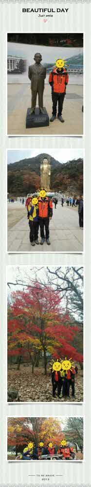 후기란 것도 처음 남긴다. 내가 여행자클럽을 몇번 이용하겠나 싶어 갈 때마다 지인에게 부탁해 예매를 하곤 했었는데 몇번의 이용에 만족도는 더 커져만 가니 이젠 회원으로 당당히 이번여행부턴 출발이다. 정회원 등록하고 처음떠난 청남대와 속리산~ 남쪽의 청와대란 이름으로 대통령 별장인 청남대, 우와~~ 탄성이 절로 난다. 대통령의 별장이 몇군대 있다지만 이곳 또한 머물수록 힐링이 될만한 곳곳의 아름다움이 눈을 뗄 수 없다. 꽃나무들이 많아 봄에와도 너무 좋겠다는 생각도 해보았다. 단풍이 절정이다. 위를 봐도 좋고 떨어진 낙엽을 밟아도 좋고... 역대 대통령들이 왜 이곳을 좋아했는지도 알것 같았다. 다음으로 떠난 속리산~~ 몇년 만이었나 싶었다. 20을 갓넘은 나이에 문장대를 거뜬히 오르던 그 때 꼭 한번 더 가보고 싶었던 속리산이었다. 이젠 40중반이 되어버린 내나이... 죽기전에 문장대를 한 번 더 도전해 보아야겠다는 욕심만 남긴채 이번 여행은 법주사로... 불상의 웅장함에 대웅전을 들어서며 괜시리 눈시울이 불거졌다. 군에 간지 이제 겨우 3달이 되는 우리 아들... 무탈히 군생활 마칠 수 있기를 부처님에 간절히 기도하고 청동미륵불에서 사진도 한컷!!! 미륵불 지하에 모셔진 불상도 너무 신기했다. 소나무가 많아 솔향이 코끝을 자극하는 법주사... 오랫만에 다녀온 여행다운 여행...여유로운 코스가 딱 마음에 들었던 여행지라 더 좋았다는...^^ 난 또 이렇게 후기를 남기며 다음여행지를 물색중이다. ㅎㅎ 대구 여행자 클럽이 좋은 건 다른 관공버스에 비해 조용하다는것, 가이드가 함께 한다는 것, 기사님들이 친절하다는 것이 아닌가 싶다. 월요일을 시작하며 다음 주말을 기대하게 하는 대구여행자클럽 쵝오!!! 장서미 가이드님이 예쁜사진 감사해요~~^^ 얼굴은 부끄러워서 스티커로...^^ |