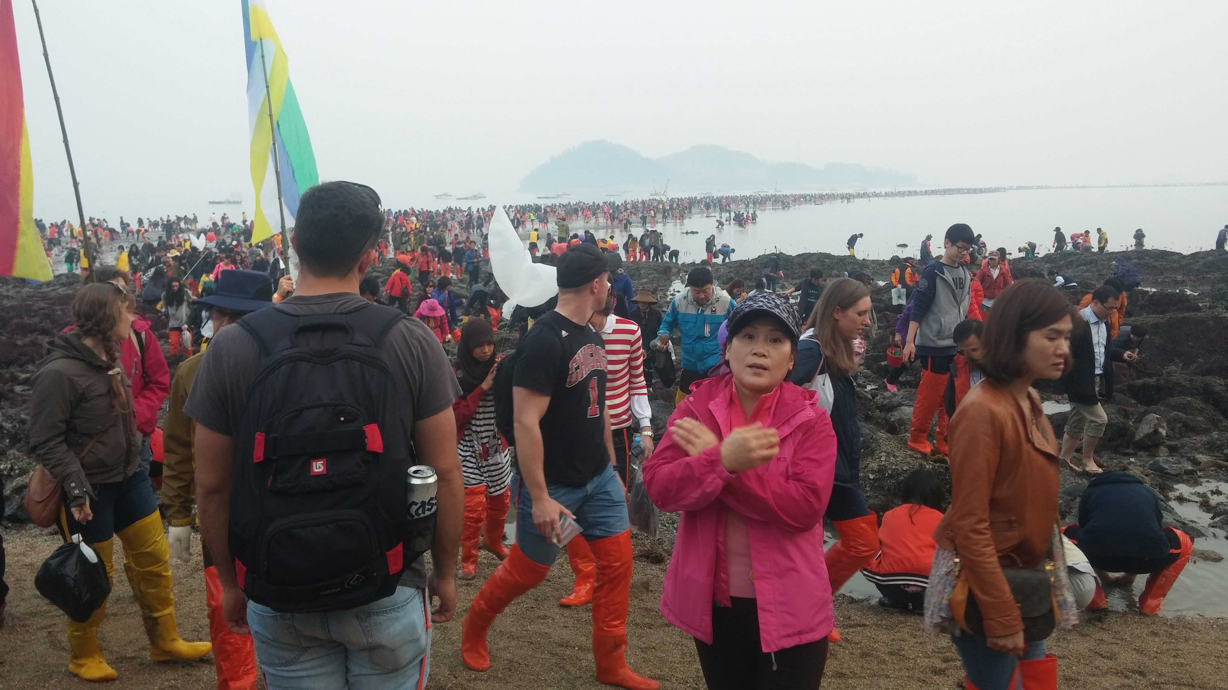 굴곡이 심한 산길을 따르니 어느새 “신비의 바닷길 축제장”에 도착하니 입구에서부터 먹거리 천막촌과 각종 이벤트장을 고향의 대목장터 같은 광경이며 “씨름판”에서 벌어진 외국인 여성들의 씨름대회는 우리의 민속놀이의 규칙과 흥미를 전수해주는 홍보대사의 한마당 잔치분위기를 한껏 전달해주는 뜻깊고 고귀한 공감대를 형성하는 감명을 주는 행사로 기억되며 진도전통의 농악과 민속춤의 향연을 만끽하고는 발디딜 틈도 없는 『뽕할머니 석상』주변에는 신비한 바닷길의 가까이로 삐집고 들어가서 동서는 바닷물속에서 어느듯 미역과 바지락을 채취하느라 정신없이 혼자서 분주하였다.