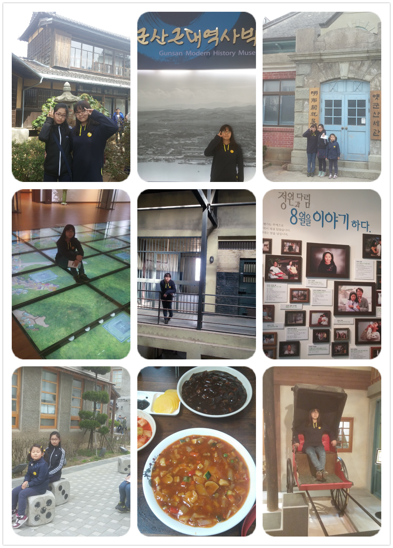 반짝하는 그런 요란한 느낌이 아니라서 좋았다고... 그 다음날 나도 검색-가입-가족회원이 되었다.^^ 다른 여행사에는 없는 <군산 투어>가 눈에 띄었다. 가족회원 가입후 첫여행..벚꽃 축제도 섬여행도 끌렸지만 웬지 이번엔 복잡한곳은 피하고 싶기도 했다. 아이들과의 여행도 다 때가 있다고 생각해서 평소 여행을 자주 다니는편인데 이번에는 같은아파트 이웃집이랑 함께 전부 5명이서 설레는 마음으로 군산으로 출발했다. 군산이 고향이라고 하셨던가? 이정헌 가이드님의 깔끔하고 친절한 설명은 이해하기 편했고,여행 끝까지 밝은 모습으로 사람들을 대하는것에 성실함과 진정성이 느껴졌다. 우리가 간곳은 공지에 올려진대로였다. . . .군산에서 유명하다는 영화원 '물짜장' 먹어봤음^^